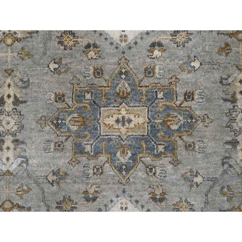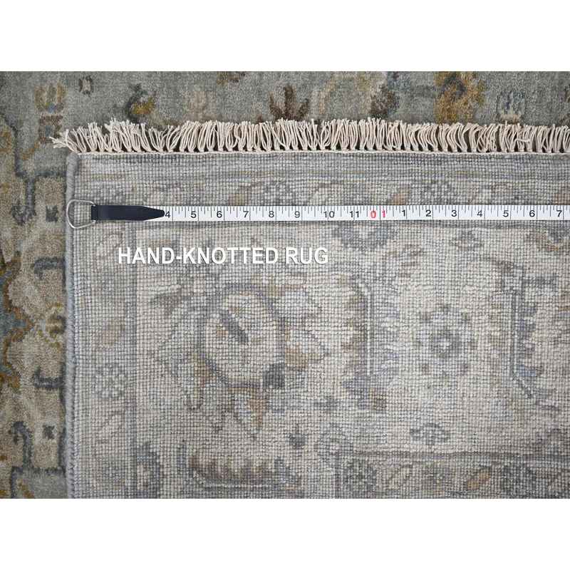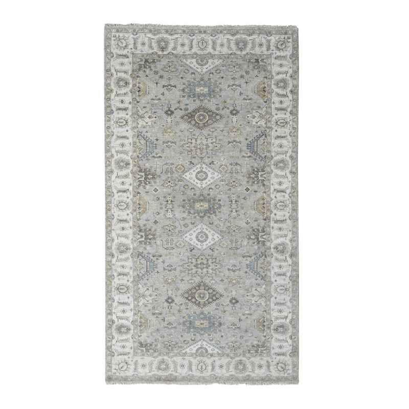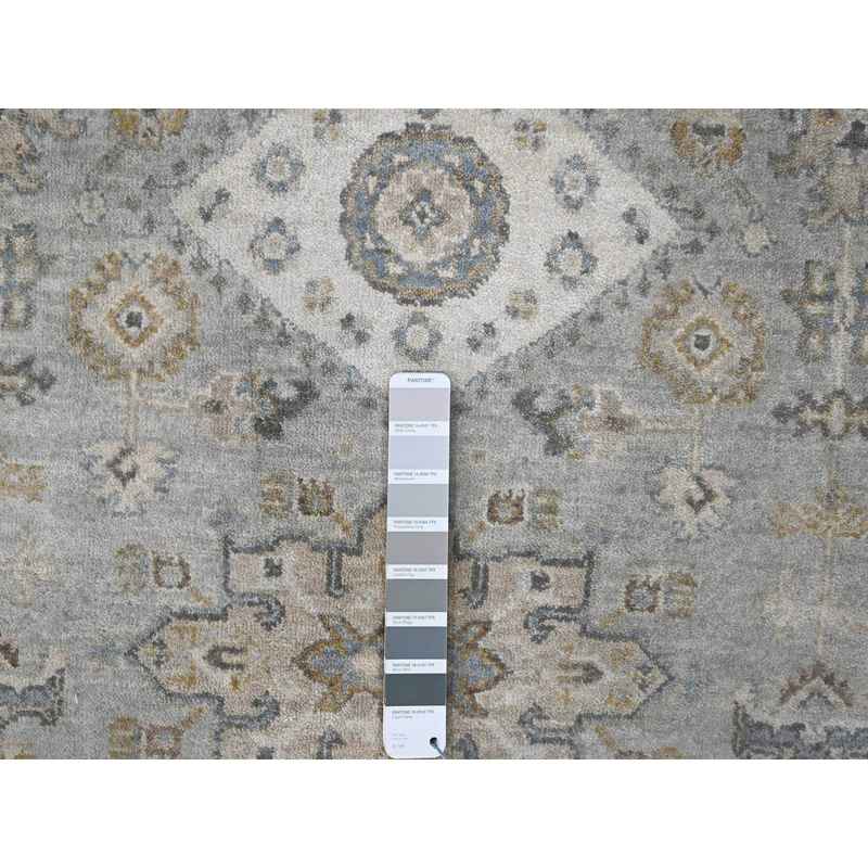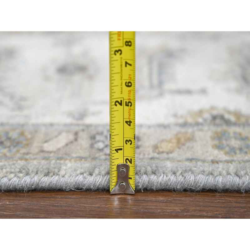 6’x11’9″ Stargazer Gray With Polar Bear White, Natural Dyes, Pure Wool, Karajeh and All Over Geometric Design, Hand Knotted, Oriental Wide Runner Rug Sh84906
