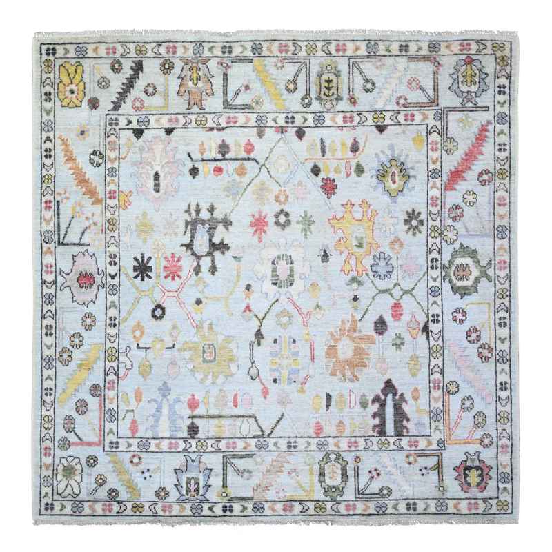 6’x6′ Arctic Blue, Afghan Angora Oushak with All Over Pattern Natural Dyes, 100% Wool Hand Knotted, Square Oriental Rug Sh74200