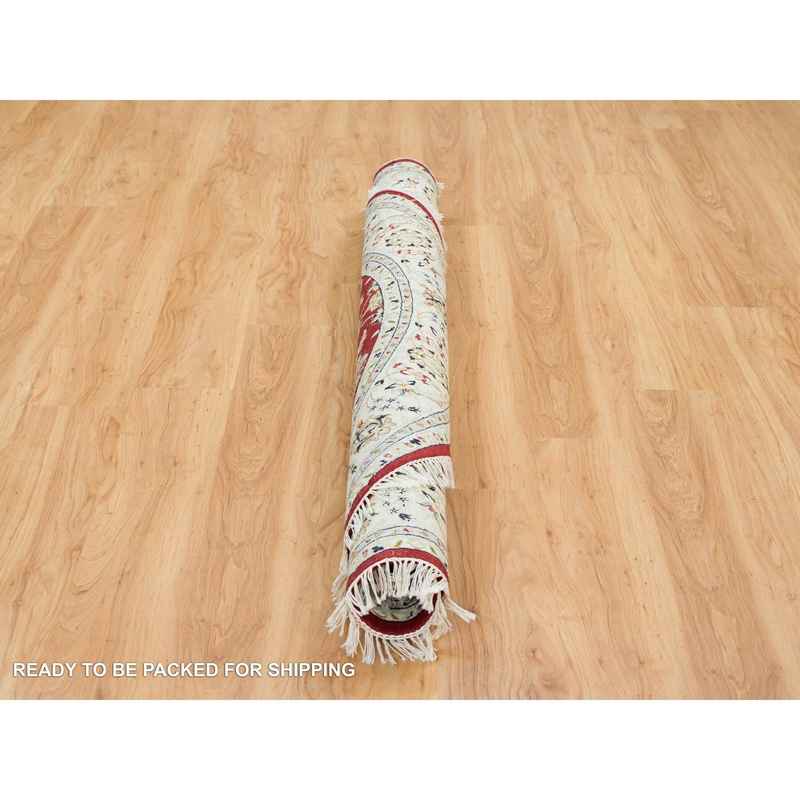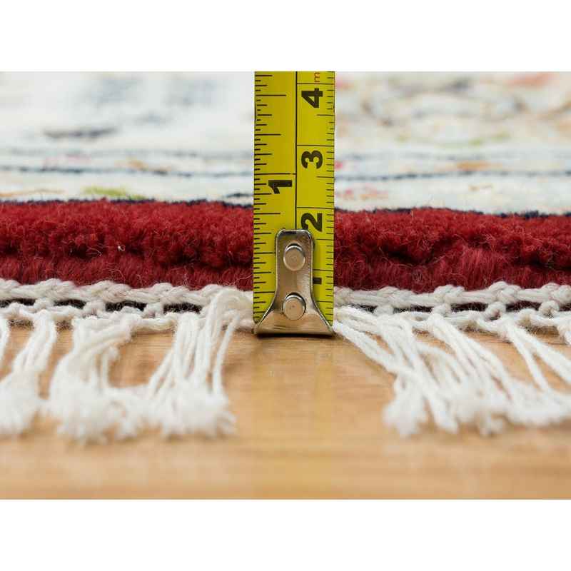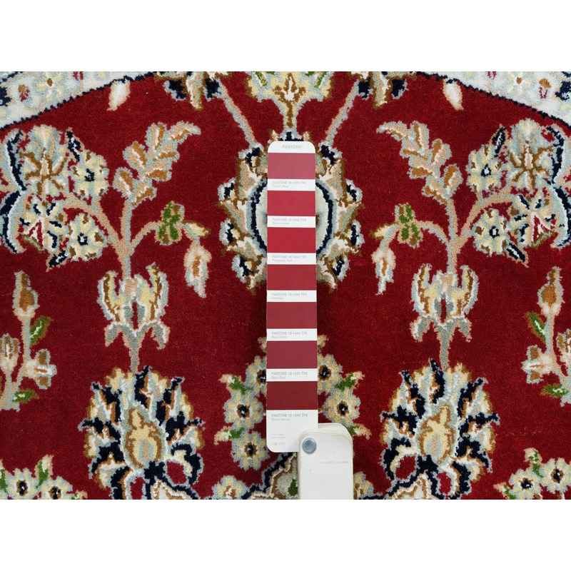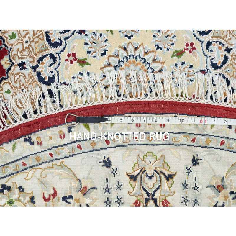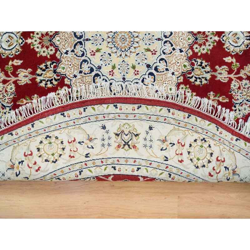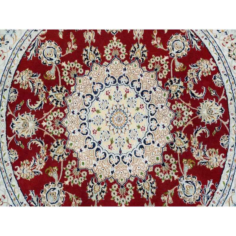 6’x6′ Burgundy Red, Nain with Center Medallion Flower Design, 250 KPSI, Soft Wool, Hand Knotted, Round Oriental Rug Sh65380