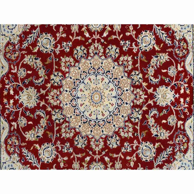 6’x6′ Cherry Red, Nain with Center Medallion Flower Design 250 KPSI, Pure Wool Hand Knotted, Square Oriental Rug Sh64724