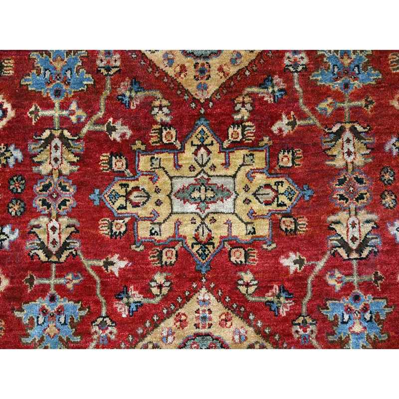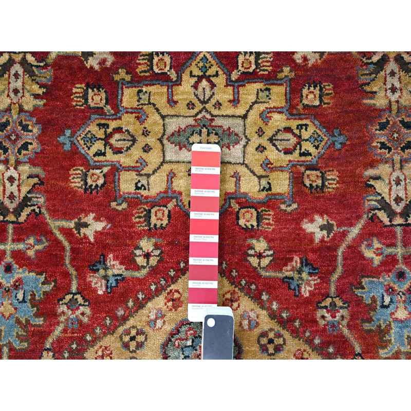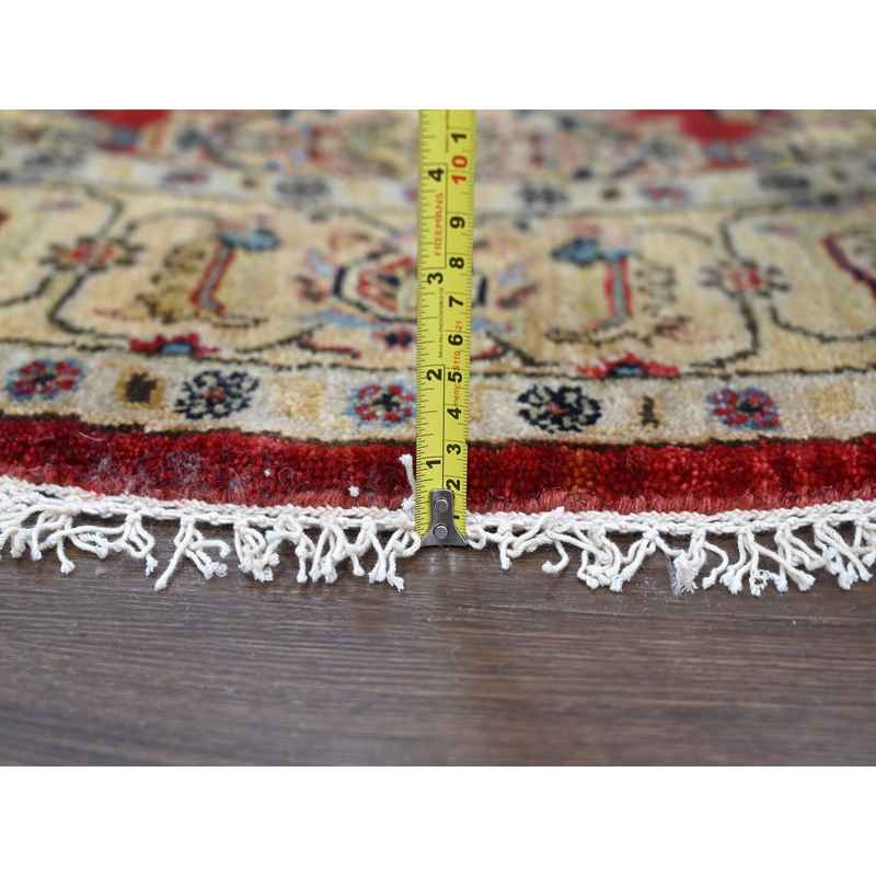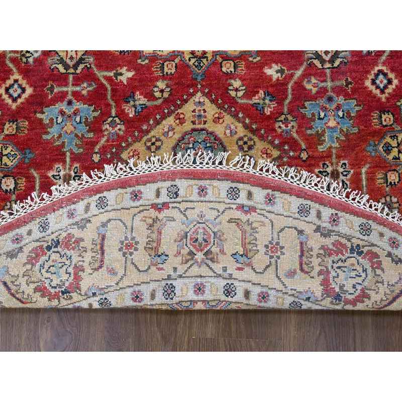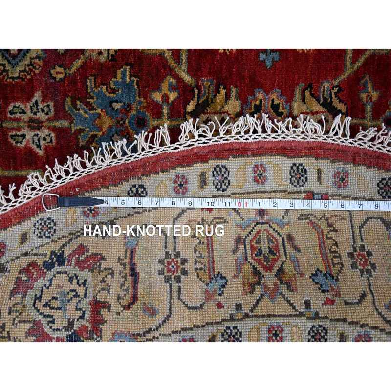 6’x6′ Chili Red, Hand Knotted, Organic Wool, Natural Dyes, Karajeh Design, Round, Soft to the Touch Pile, Oriental Rug Sh84413