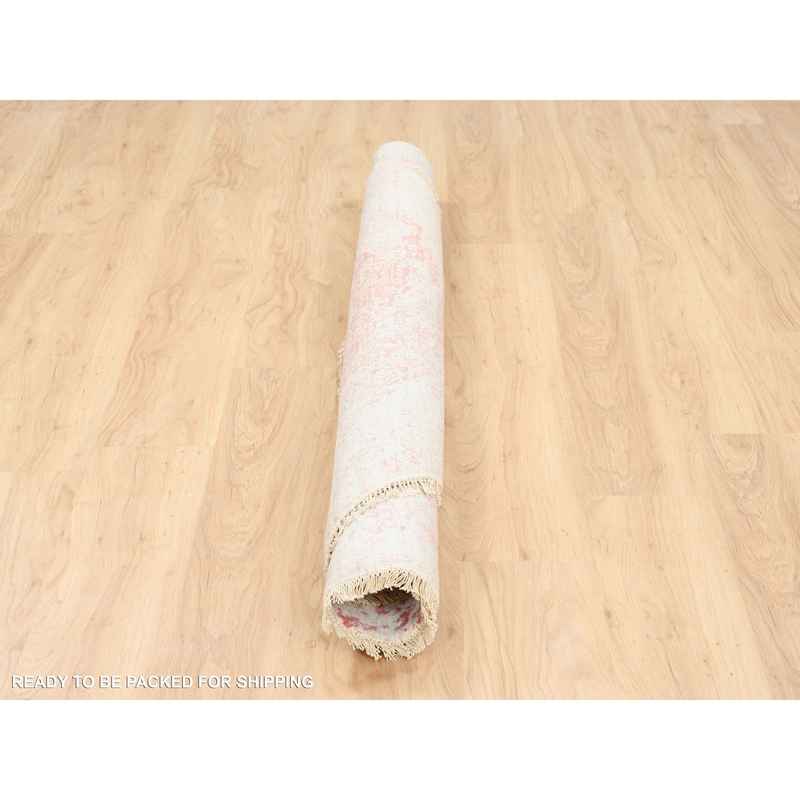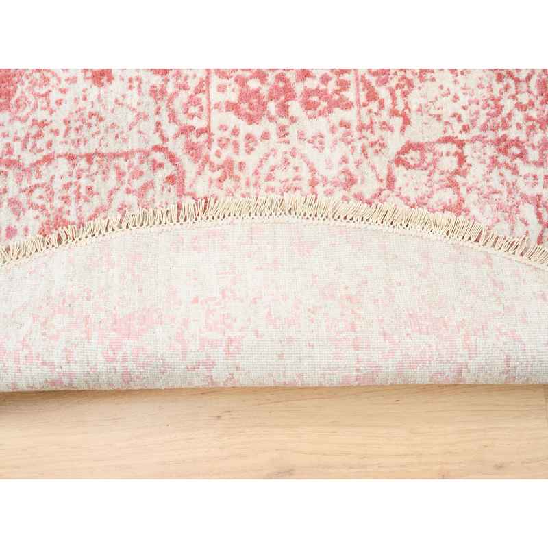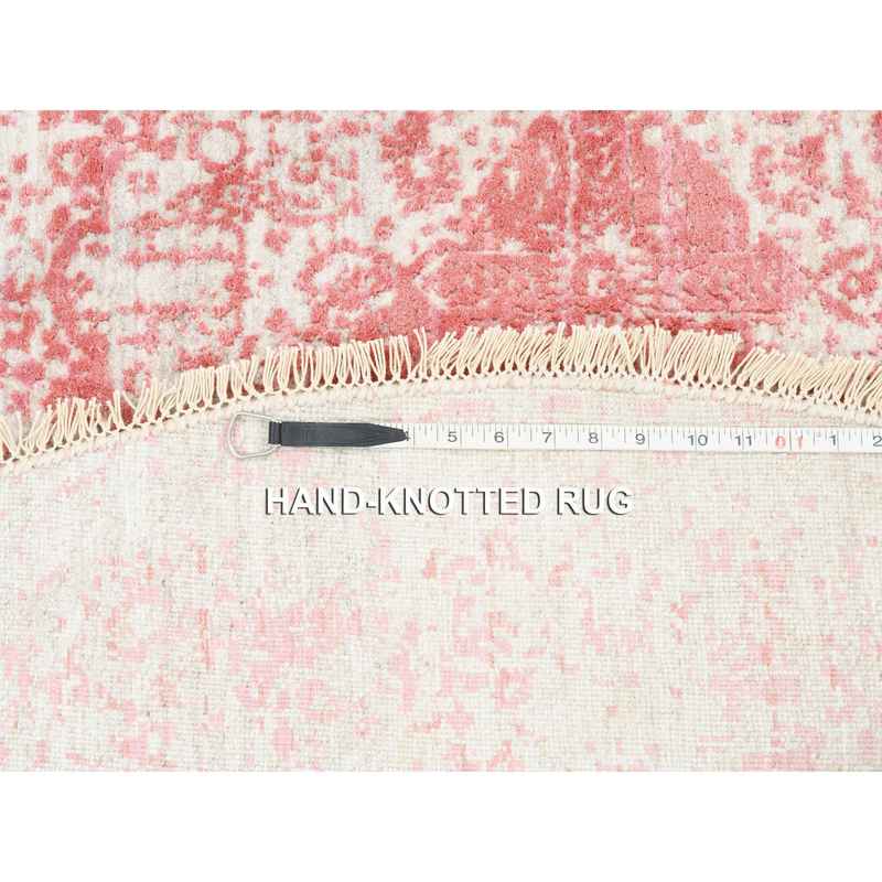 6’x6′ Hand Knotted Pink Broken Persian Medallion Design Wool and Pure Silk Oriental Round Rug Sh62875