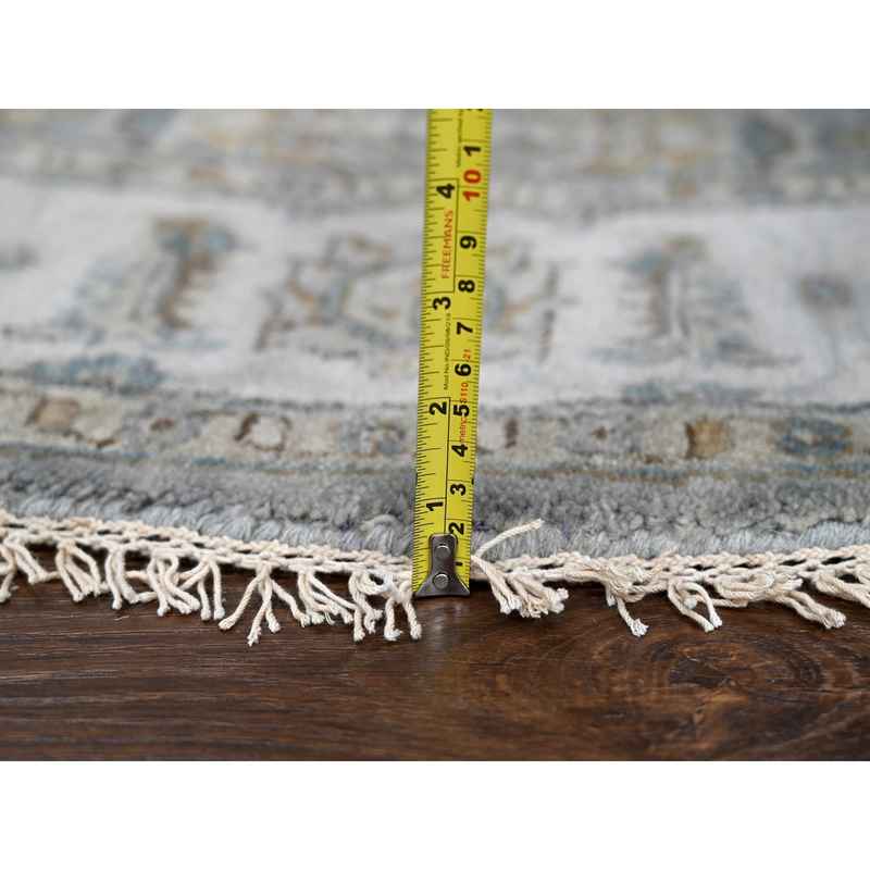 6’x6′ Lavender Gray, Hand Knotted, Vegetable Dyes, Karajeh Design with Geometric Medallion, Extra Soft Wool, Round Oriental Rug SH84639