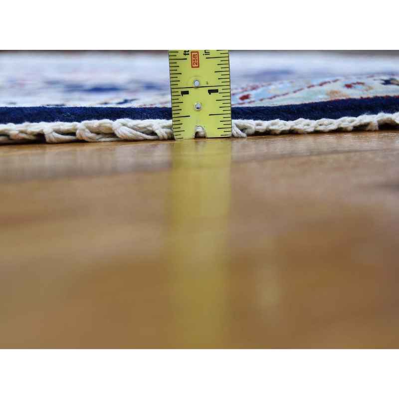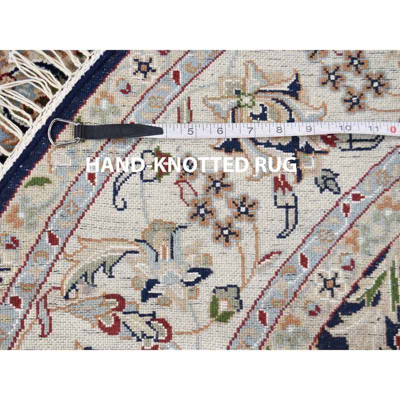6’x6′ Midnight Blue Nain with Center Medallion Flower Design Pure Wool 250 KPSI Hand Knotted Round Oriental Rug Sh59993