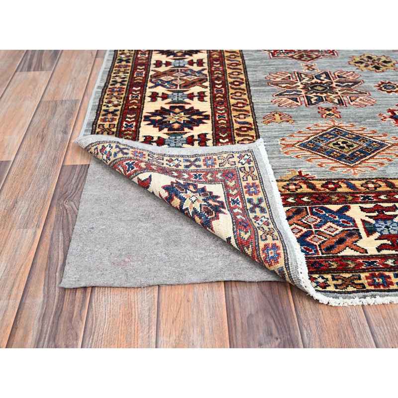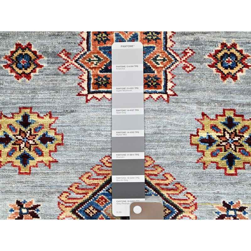 6’x6′ Seagull Gray, Wisp White Border, Denser Weave Natural Wool Hand Knotted, Afghan Super Kazak, Natural Dyes, Oriental Square Rug Sh86891