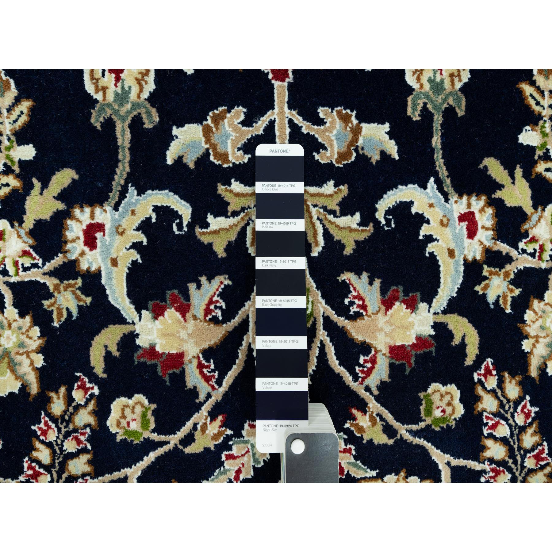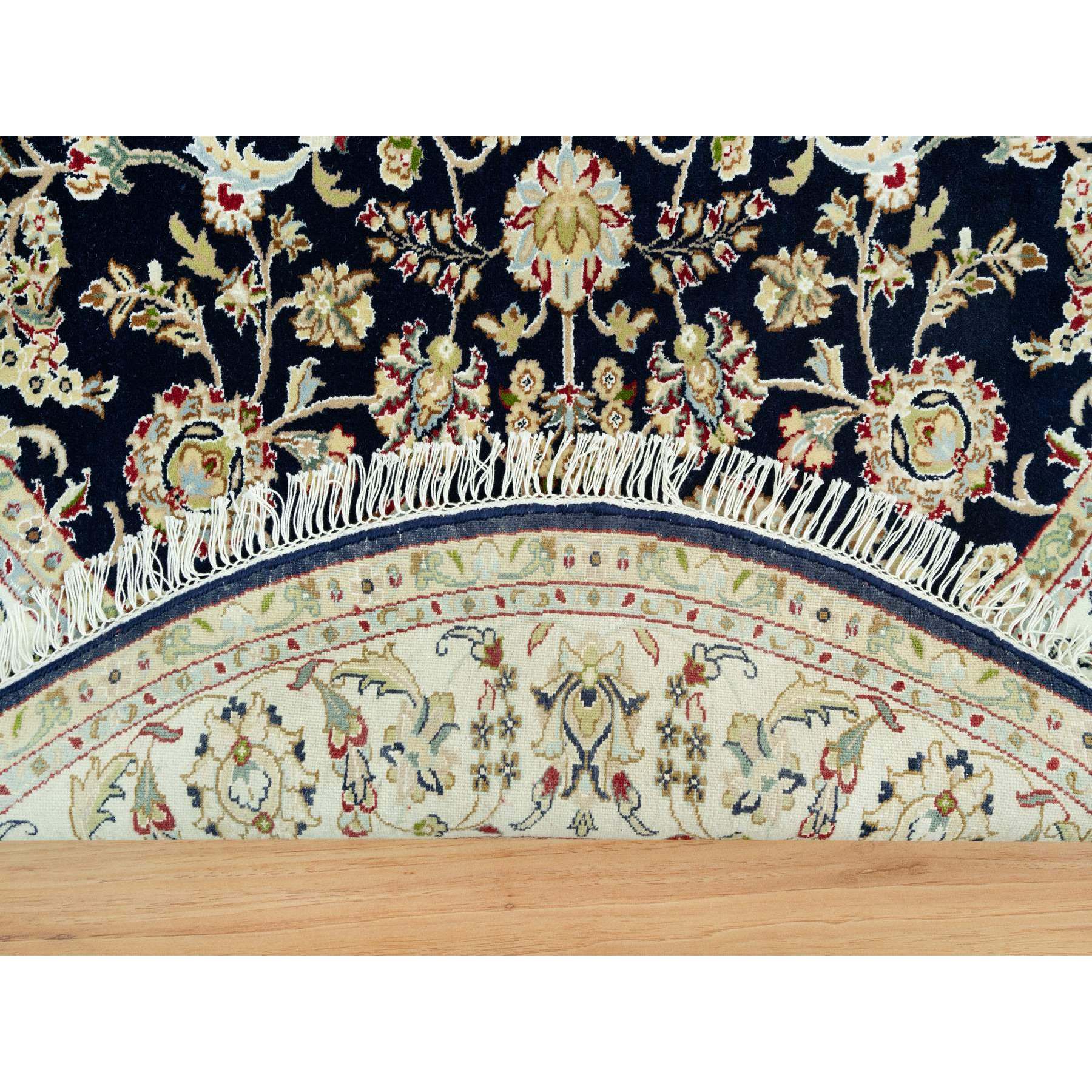 6’x6′ Vulcan Blue, Ivory Border, 100% Wool, Hand Knotted 250 KPSI Densely Woven, Nain All Over Flower Design, Round Oriental Rug Sh90499