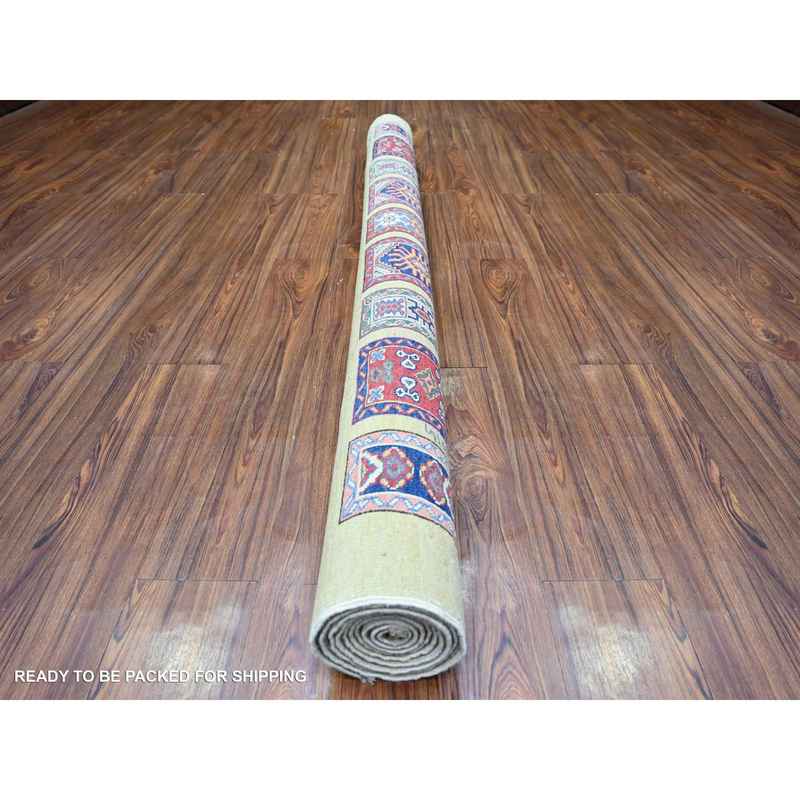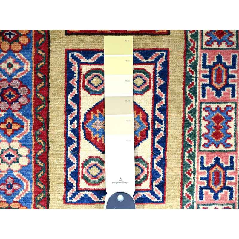 6’x8’6″ Camel Brown, Vegetable Dyes, 100% Wool, Afghan Super Kazak with Geometrical Garden Design, Hand Knotted, Oriental Rug Sh74833