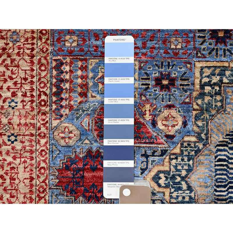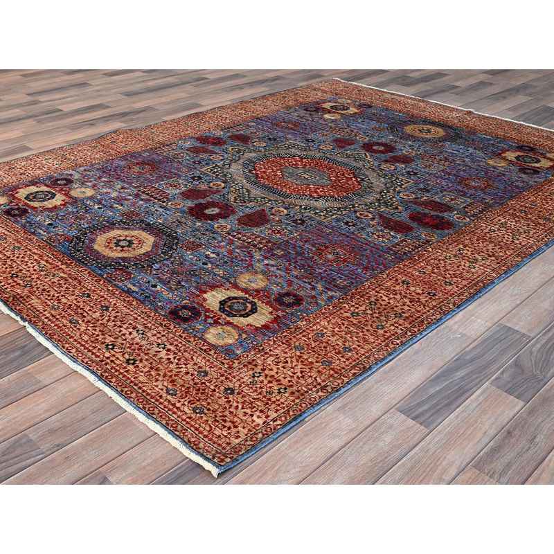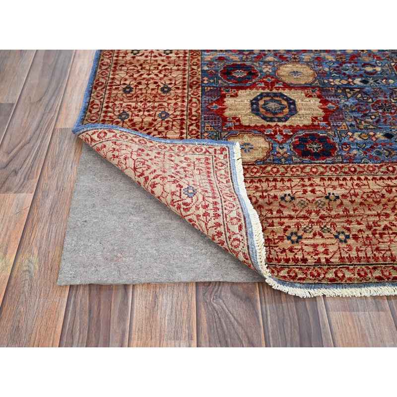 6’x8’7″ Ocean Blue and Shoji White, 200 KPSI, 14th Century Mamluk Dynasty With Medallions Design, Hand Knotted Natural Wool, Vegetable Dyes, Oriental Rug Sh86744