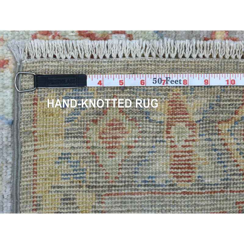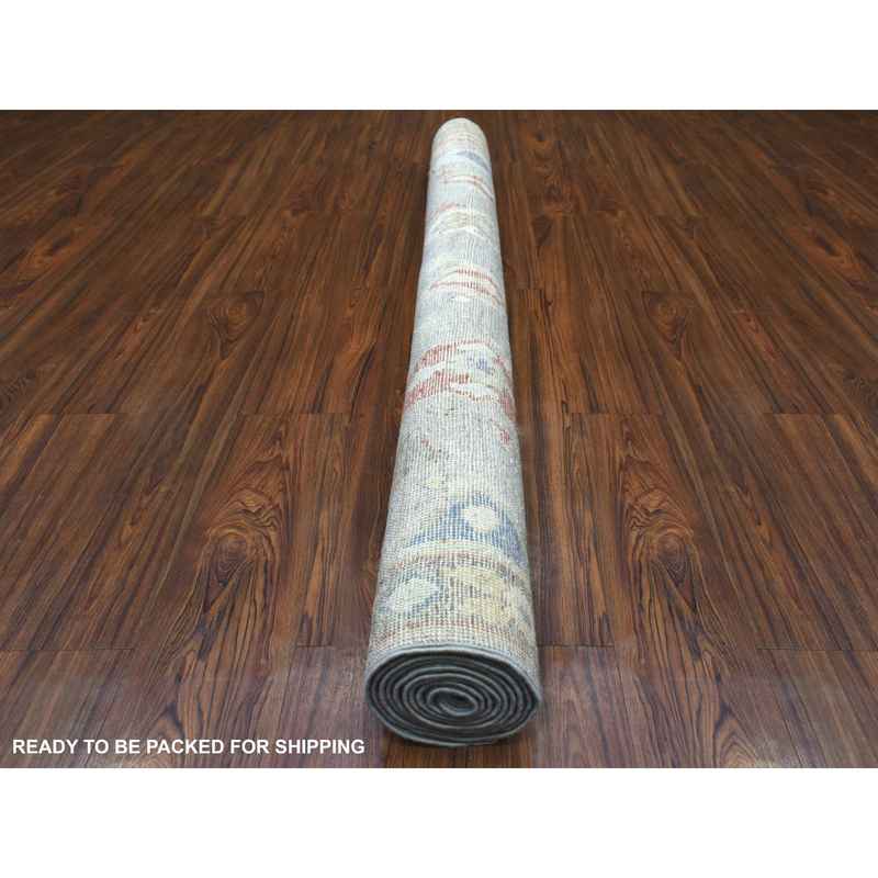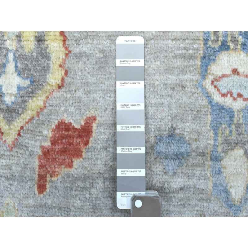 6’x8’8″ Hand Knotted Gray Afghan Angora Oushak with Colorful Geometric Medallions Design Soft Wool Oriental Rug Sh70065