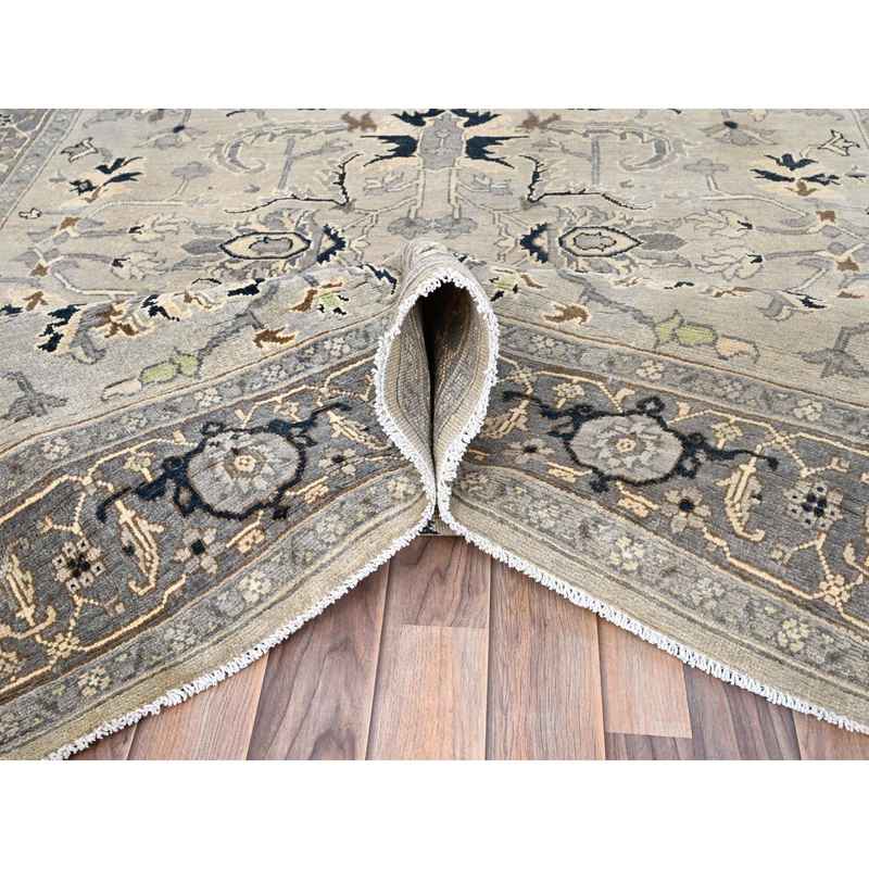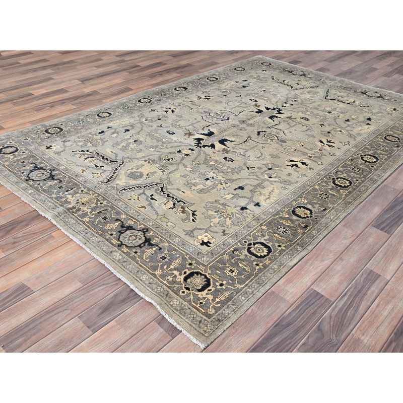 6’x8’9″ Battleship Grey, Afghan Peshawar with Serapi Heriz Design, Soft Wool, Vegetable Dyes, Dense Weave, Hand Knotted, Oriental Rug Sh85611