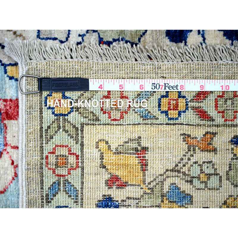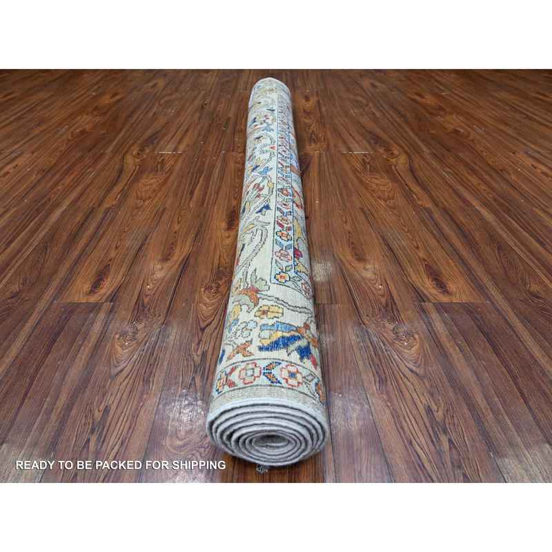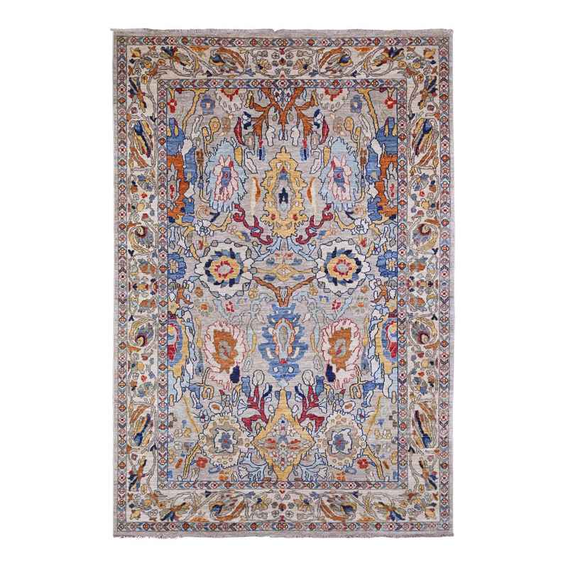6’x8’9″ Chalk Gray, Vegetable Dyes, Aryana with Ziegler Mahal All Over Colorful Design, Hand Knotted, Vegetable Dyes, Vibrant Wool, Oriental Rug Sh88411