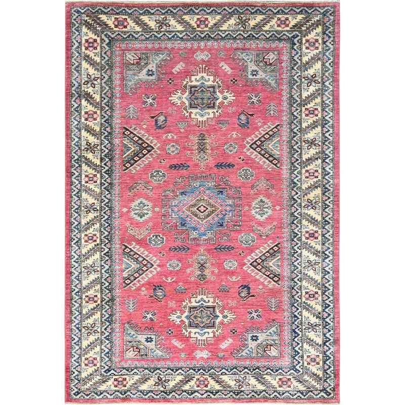 6’x8’9″ Taffy Pink, Natural Wool Hand Knotted, Afghan Super Kazak with Large Medallions, Natural Dyes Densely Woven, Oriental Rug Sh82390