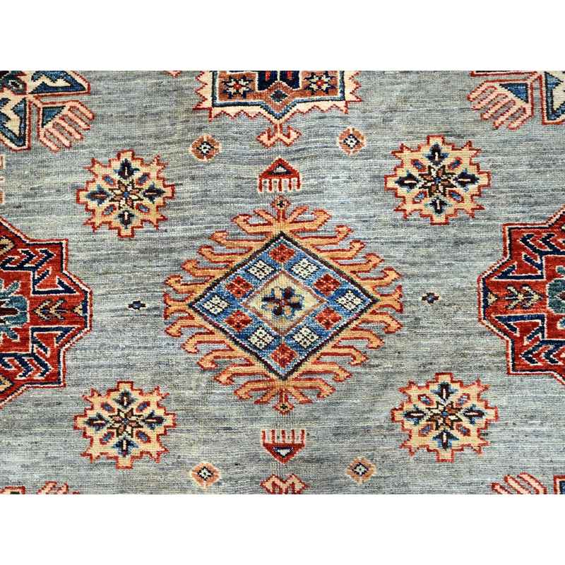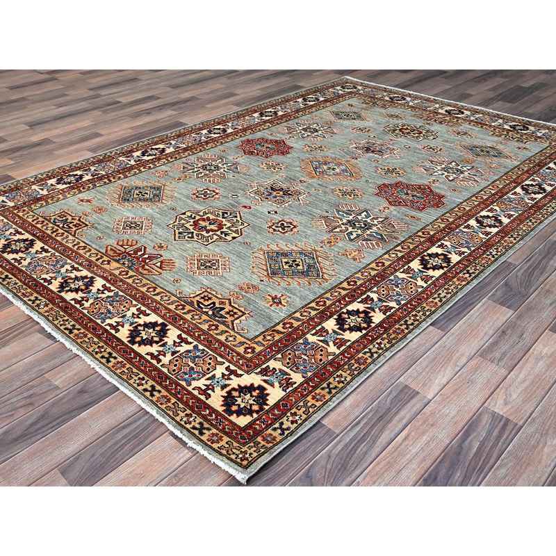 6’x9′ Belgian Block Gray, Afghan Hand Knotted Super Kazak with Tribal Medallions, Vegetable Dyes Denser Weave, Soft Wool Oriental Rug Sh86563