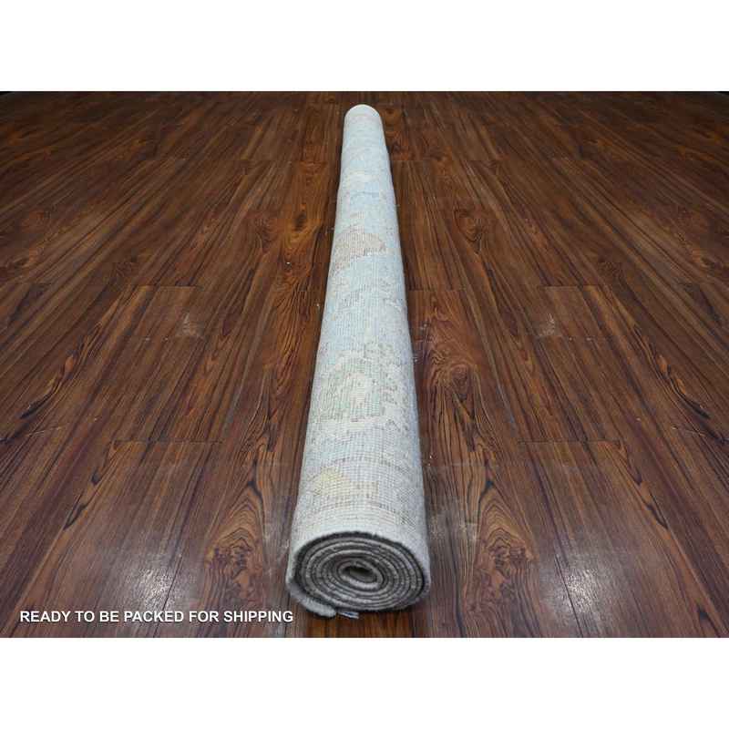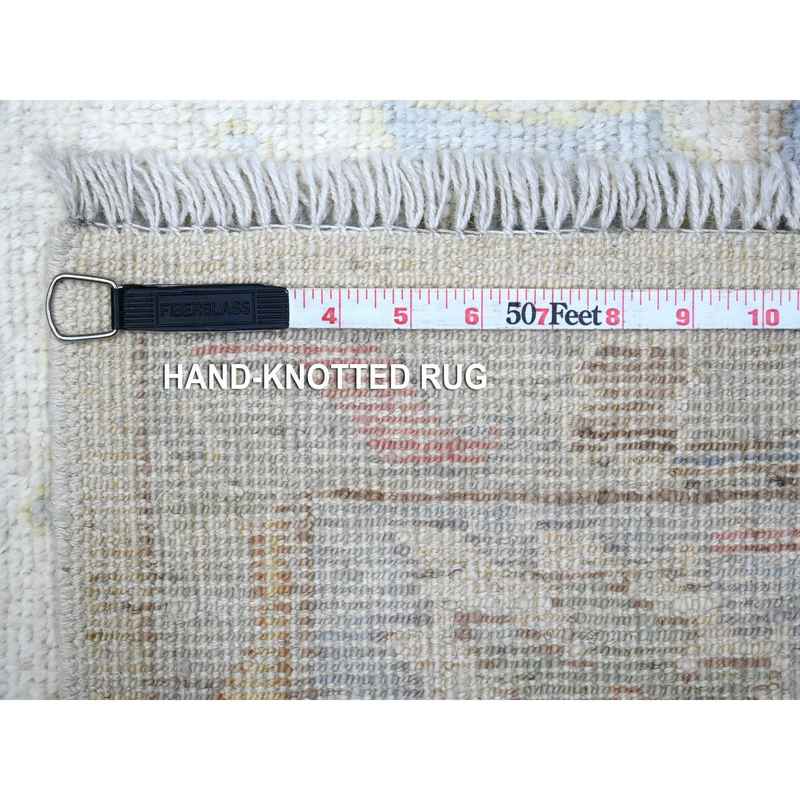 6’x9′ Dove White, Hand Knotted With Wool Foundation, Village Floral All Over Design, Vegetable Dyes, Angora Oushak, Afghan Oriental Rug Sh89589