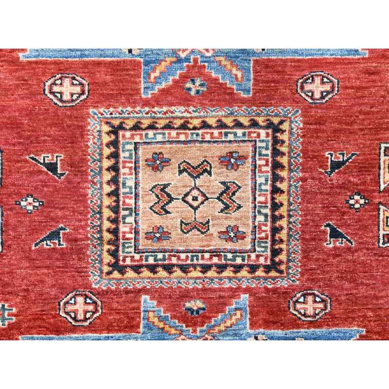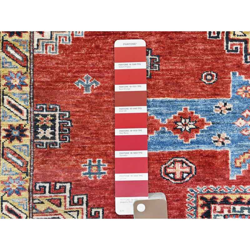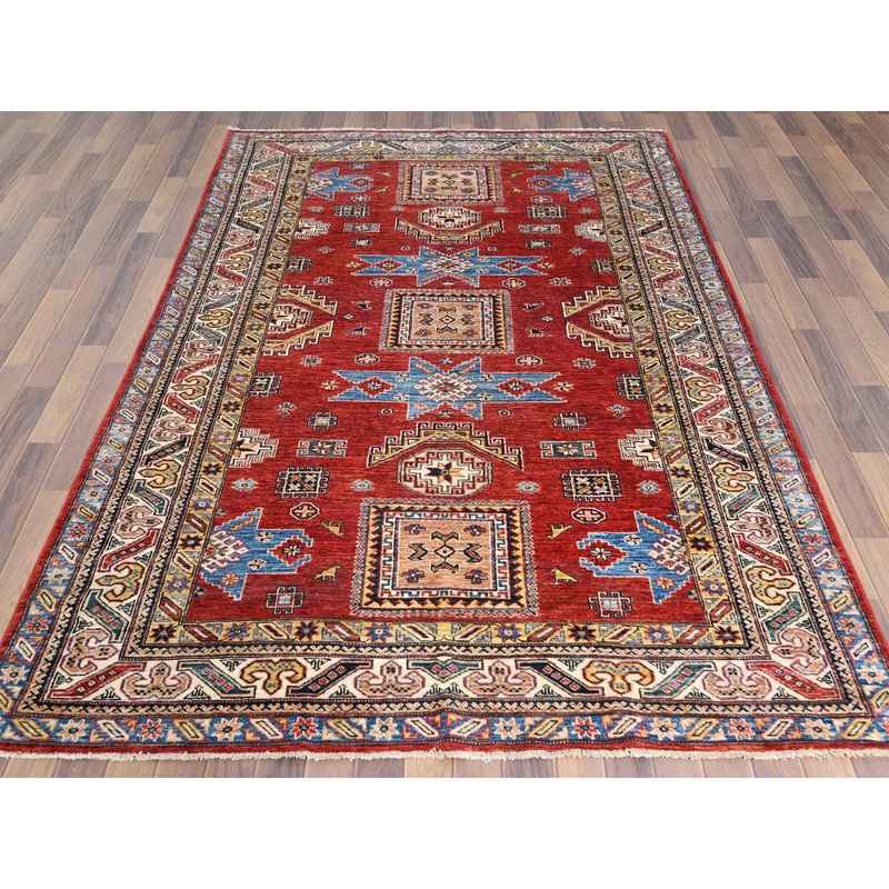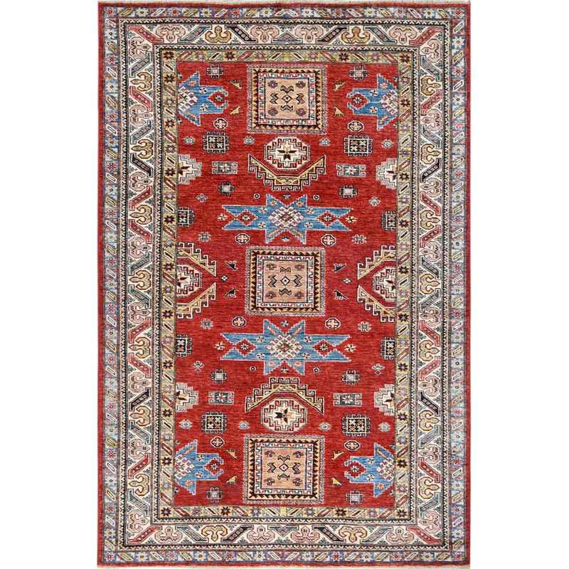 6’x9′ Hand Knotted Rich Red Afghan Super Kazak with Large Medallions Design Pure Wool Oriental Rug Sh61657