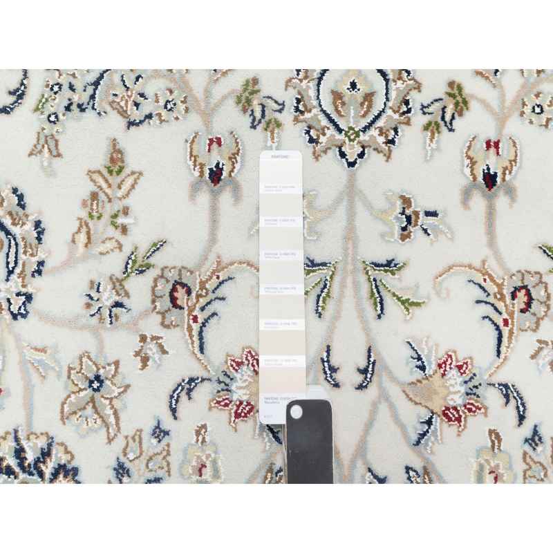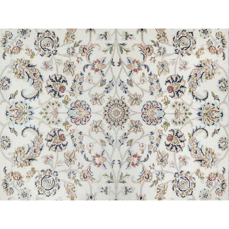 6’x9′ Isabelline White, Wool and Silk, Hand Knotted, Nain All Over Floral Design, 250 KPSI, Oriental Rug Sh90897