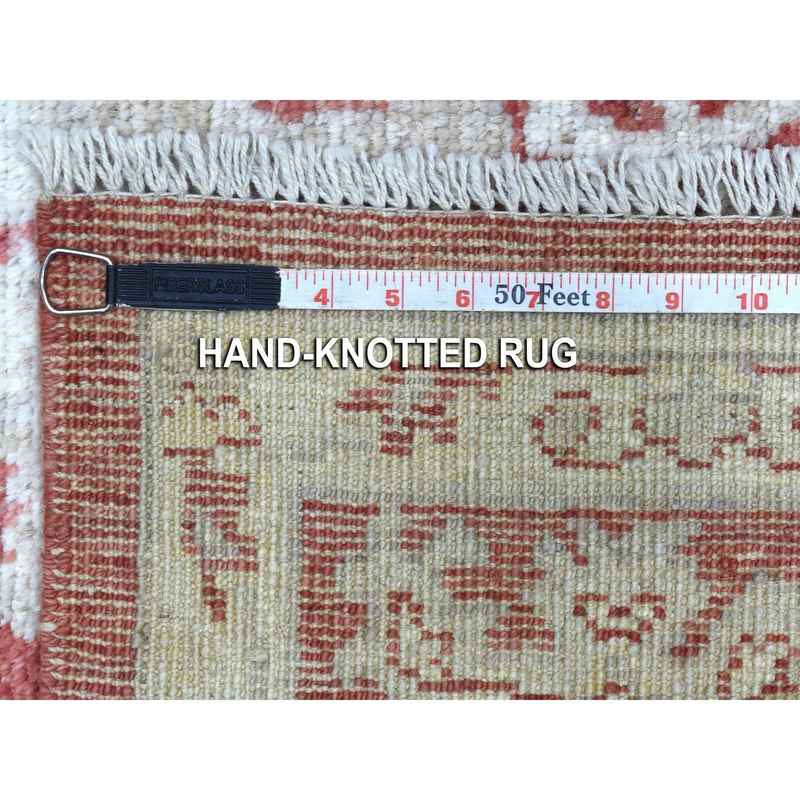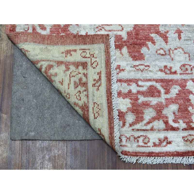 6’x9′ Red with Touches of Ivory Angora Oushak Hand Knotted Soft, Velvety Wool Floral Design Oriental Rug Sh67987