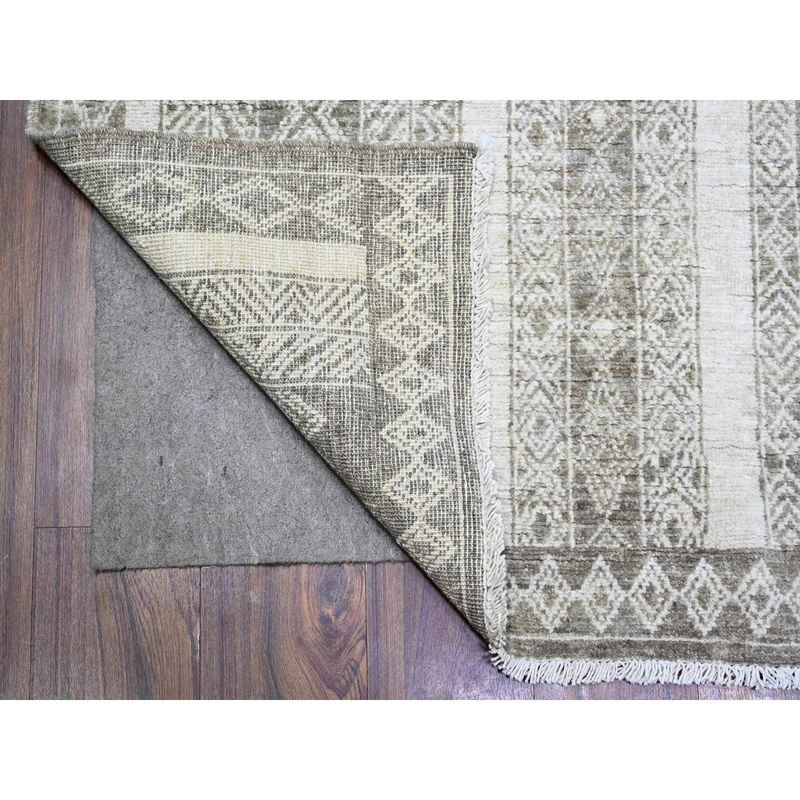 6’x9′ Taupe Brown, Extra Soft Wool Hand Knotted, Natural Dyes Finer Peshawar with Intricate Geometric Motifs, Oriental Rug Sh74278