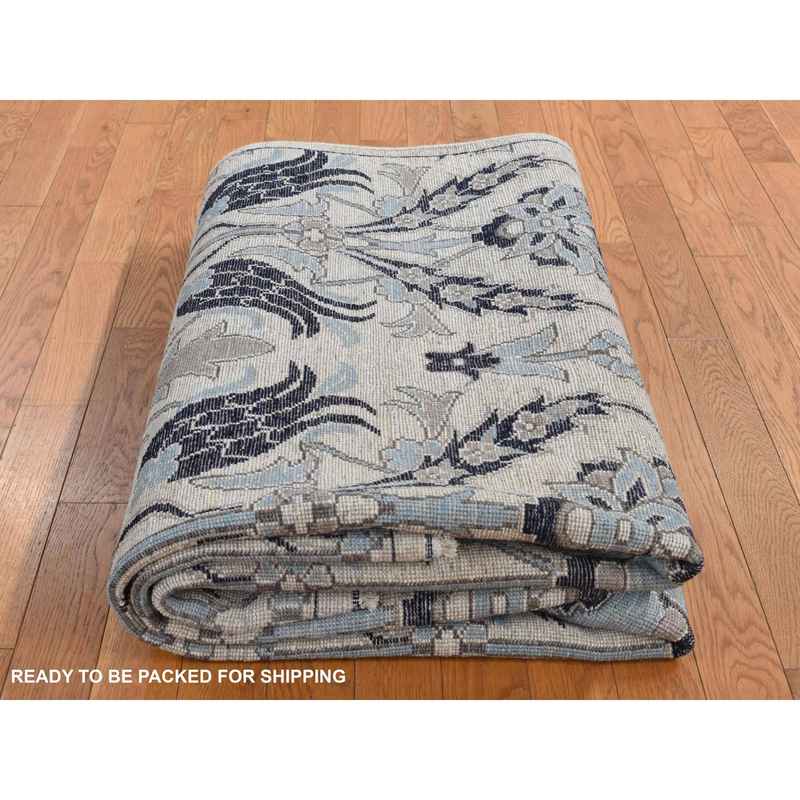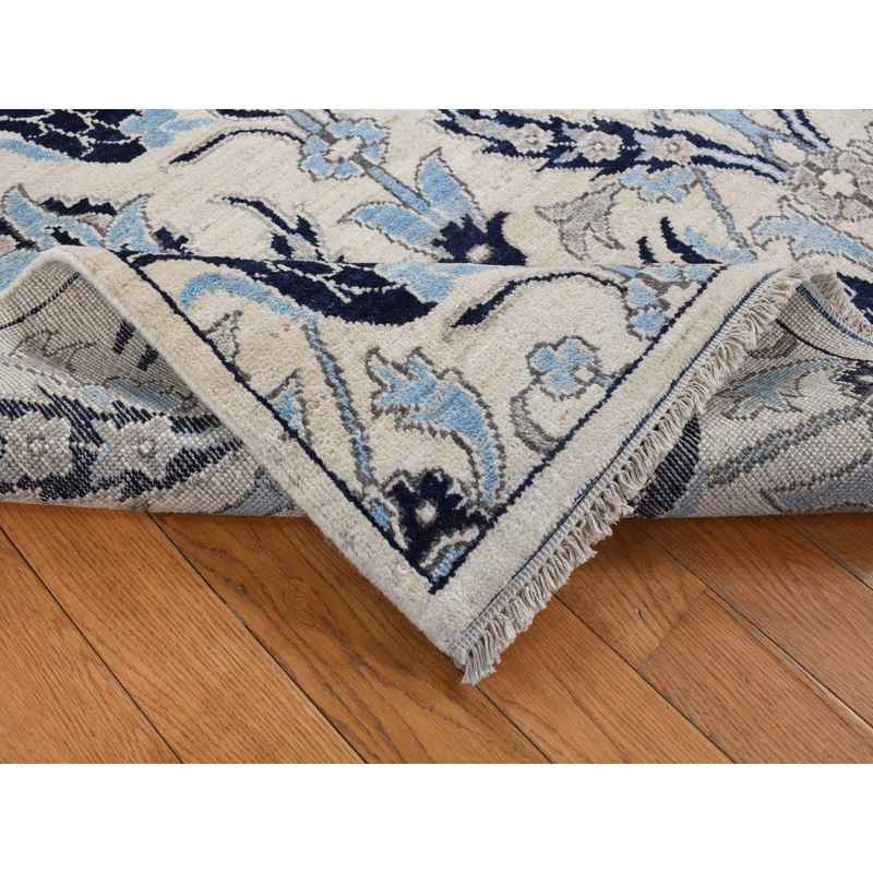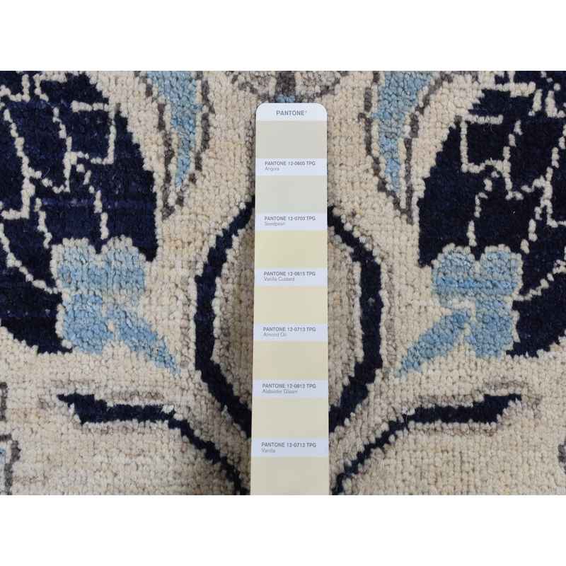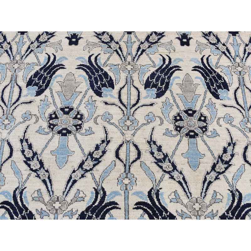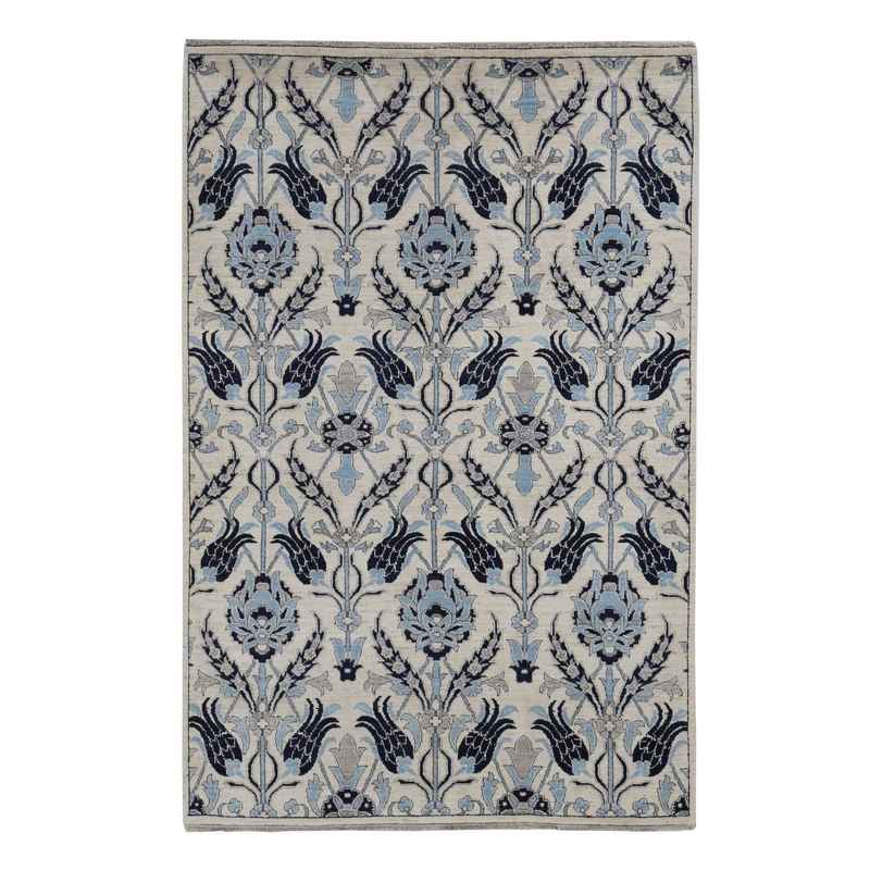 6’x9’1″ Baby Powder White, Hand Knotted, Peshawar Borderless Tulip and Flower Leaf Repetitive All Over Design, Pure Wool, Oriental Rug Sh87425