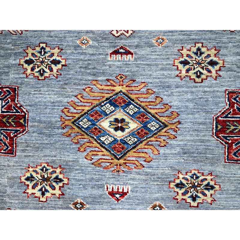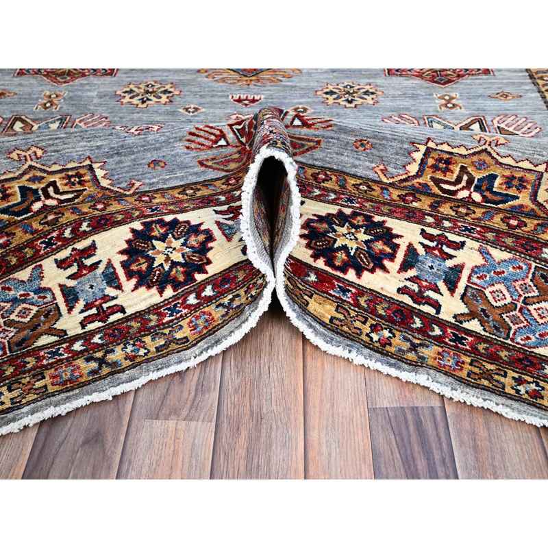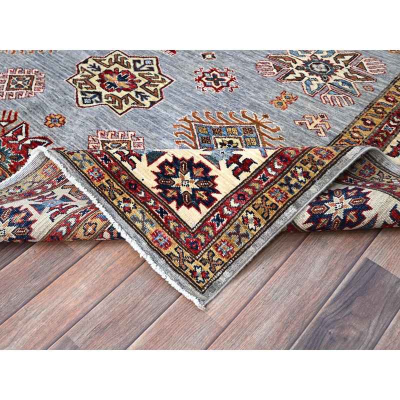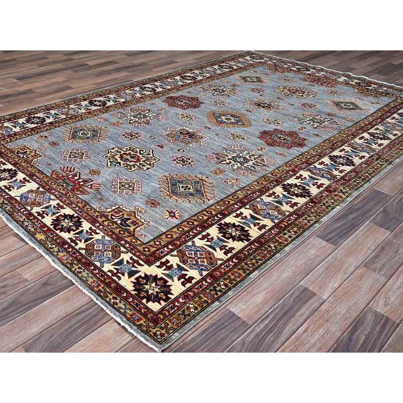 6’x9’1″ Quiet Gray, Soft, Velvety Wool Hand Knotted Afghan Super Kazak with Medallions Design Densely Woven Oriental Rug Sh86889