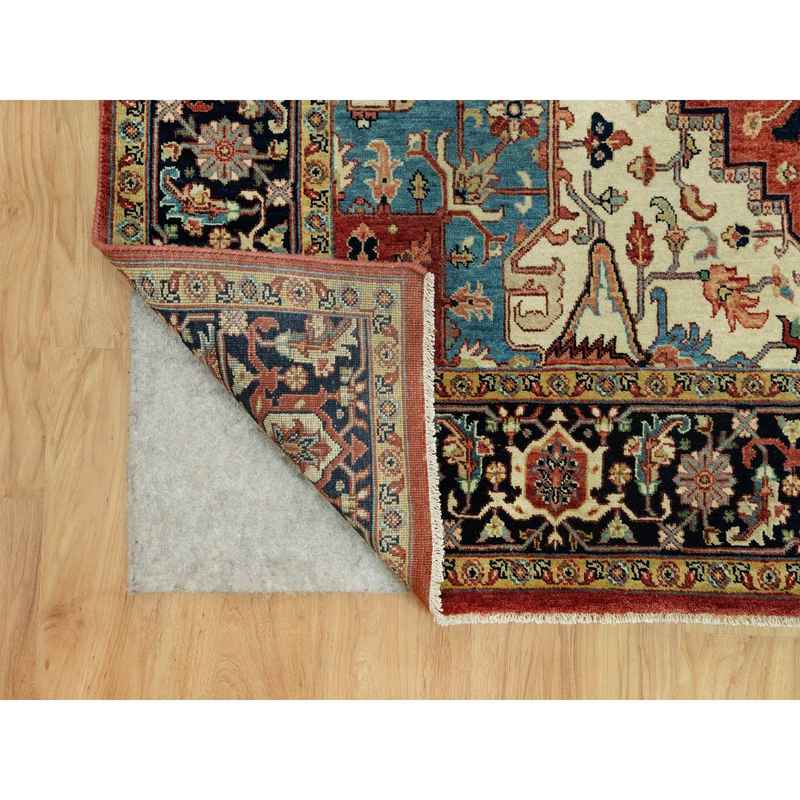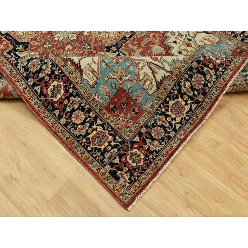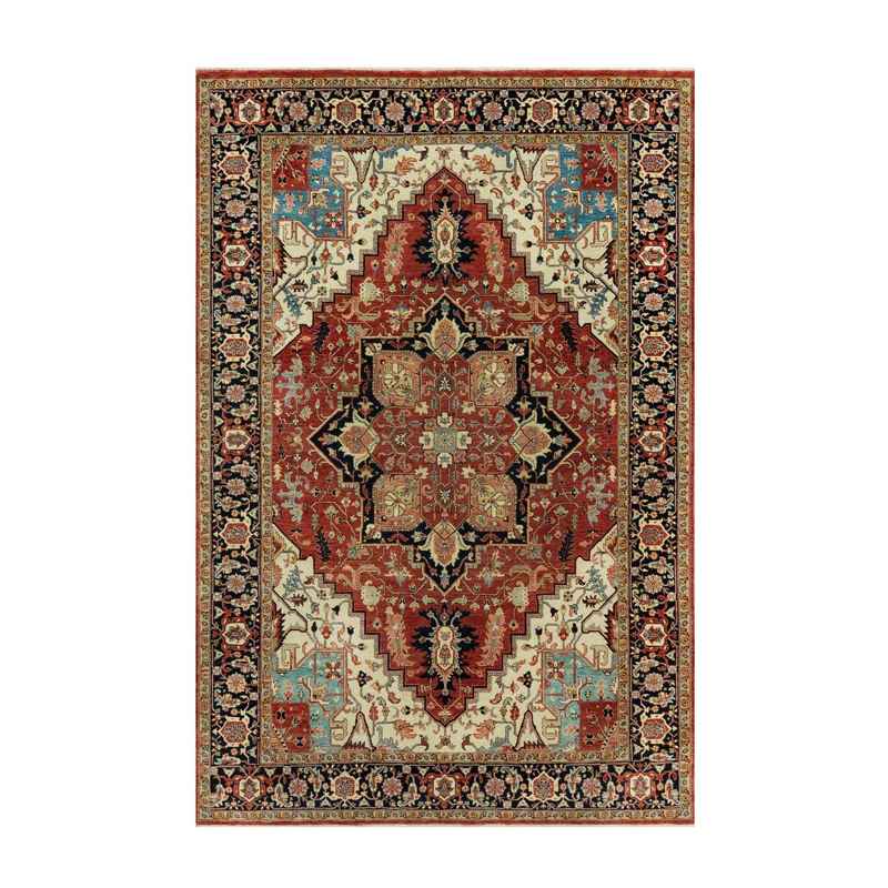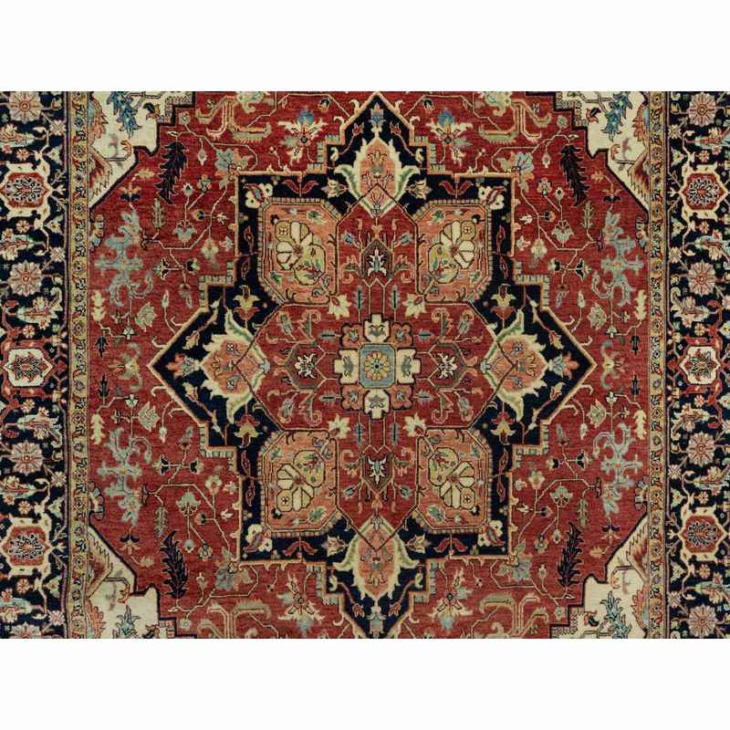 6’x9’1″ Tanager Red With Club Navy Blue, Antiqued Fine Heriz, Re-Creation, Hand Knotted All Wool Plush Pile, Densely Woven, Vegetable Dyes, Oriental Rug Sh90643