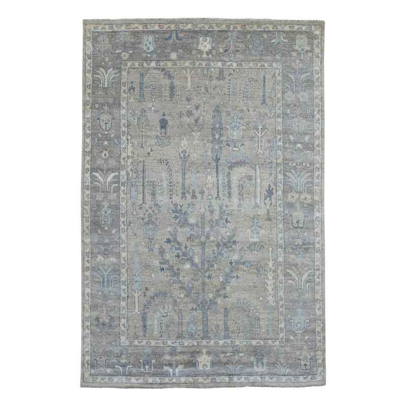 6’x9’2″ Angora Oushak with Willow and Cypress Tree Design Organic Wool Hand Knotted Gray Oriental Rug Sh69266
