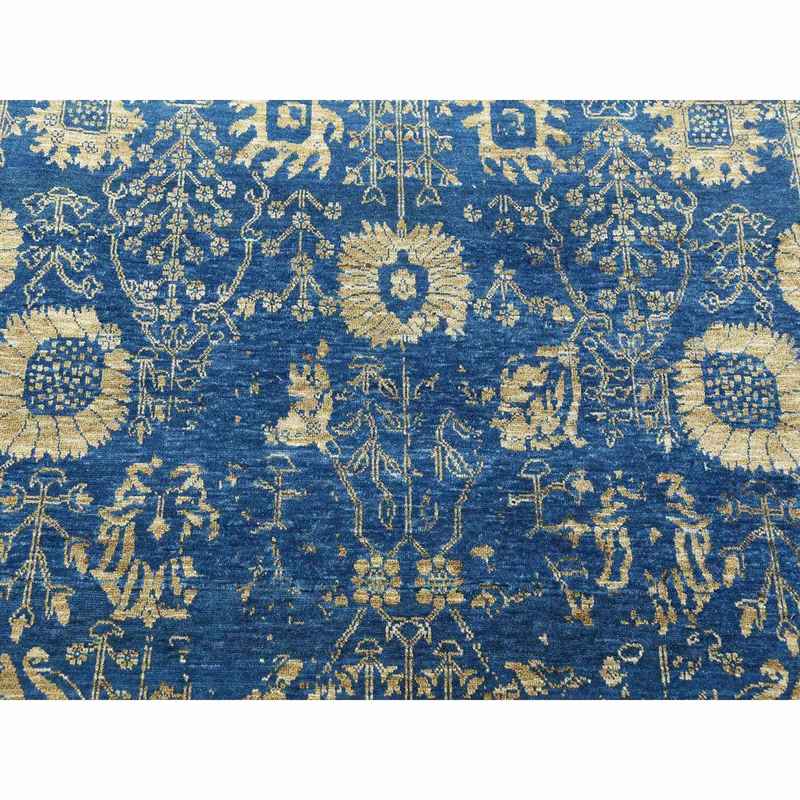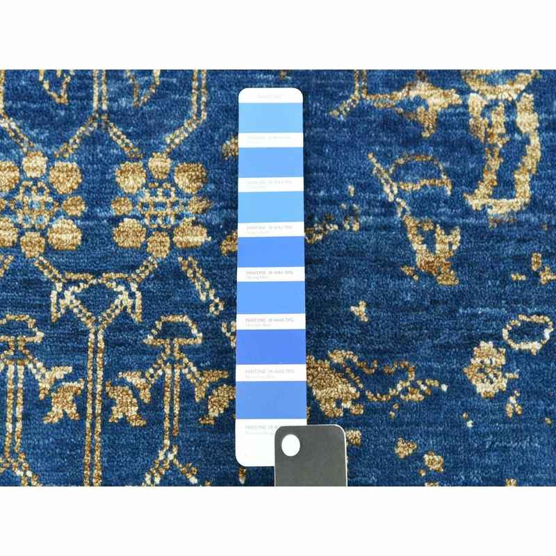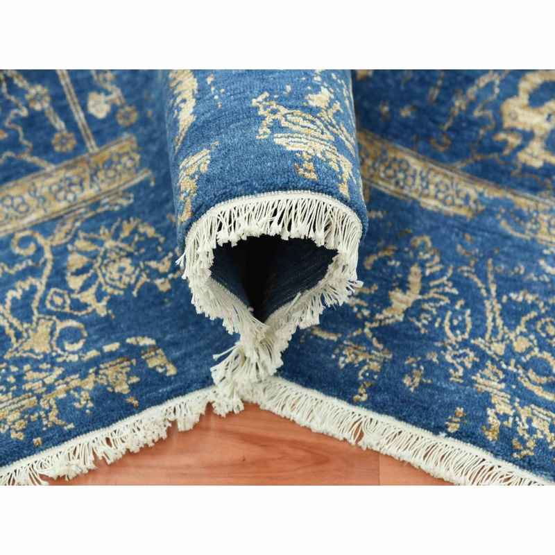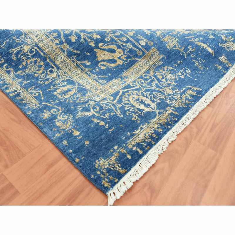 6’x9’2″ Denim Blue, Broken Erased Persian Tabriz Design, Wool and Silk Hand Knotted, Oriental Rug Sh79269
