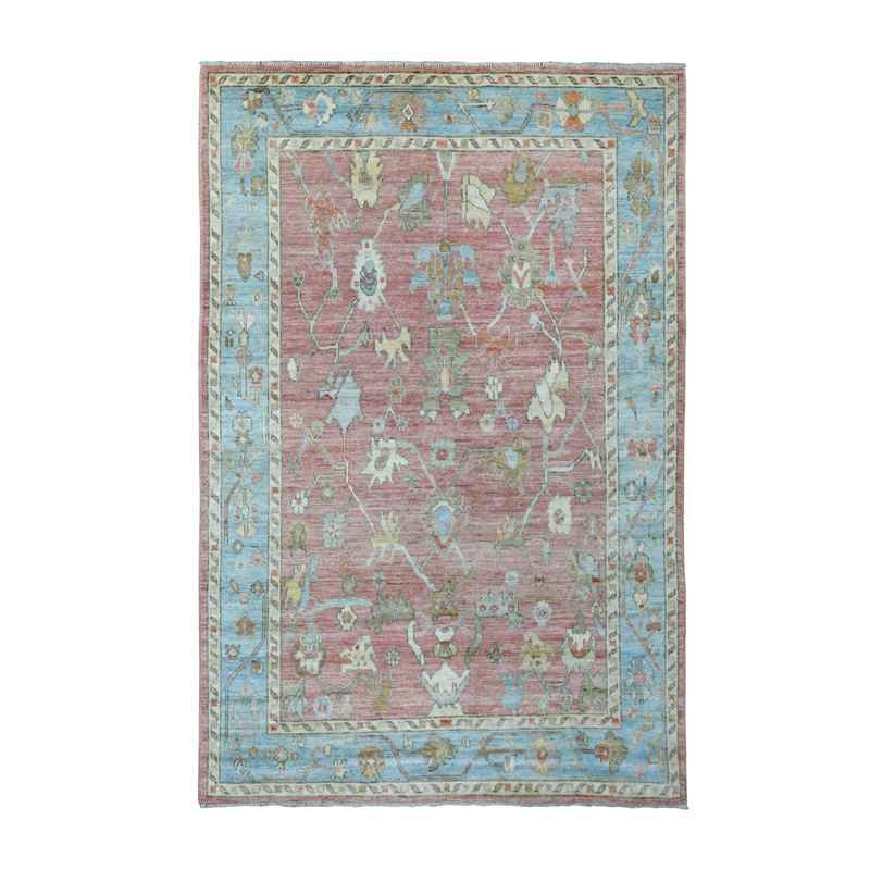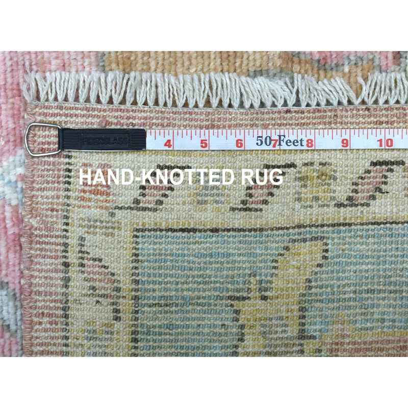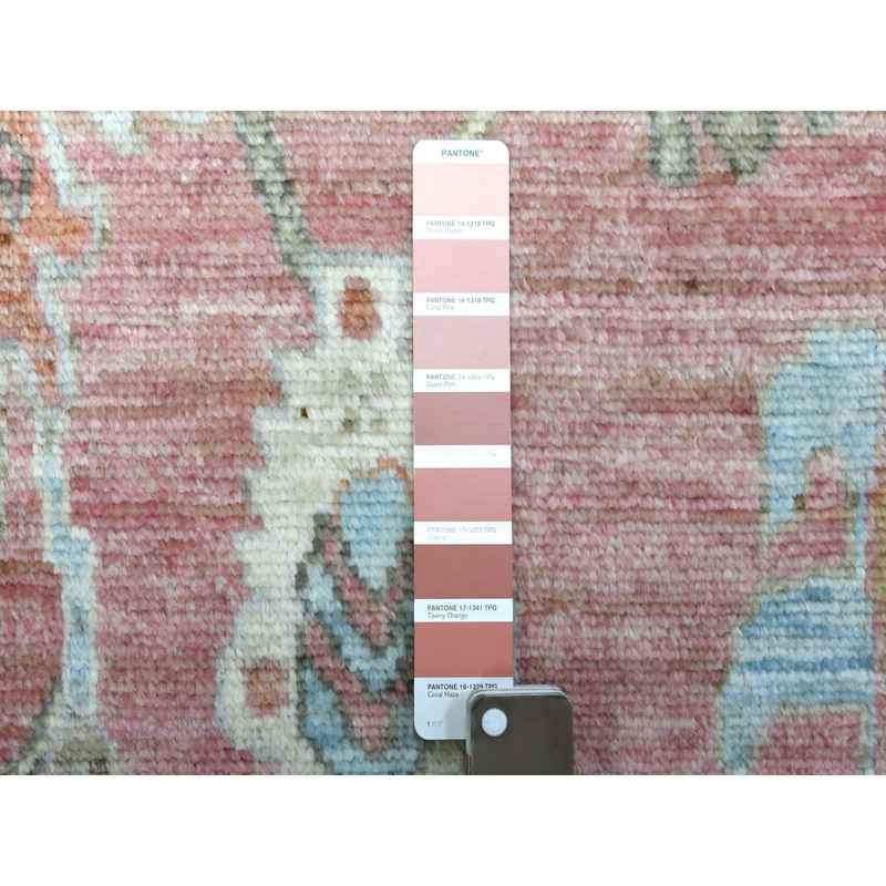 6’x9’2″ Hand Knotted Soft Pink Afghan Angora Ushak with a Beautiful, Color Pattern Soft, Velvety Plush Wool Oriental Rug Sh69768