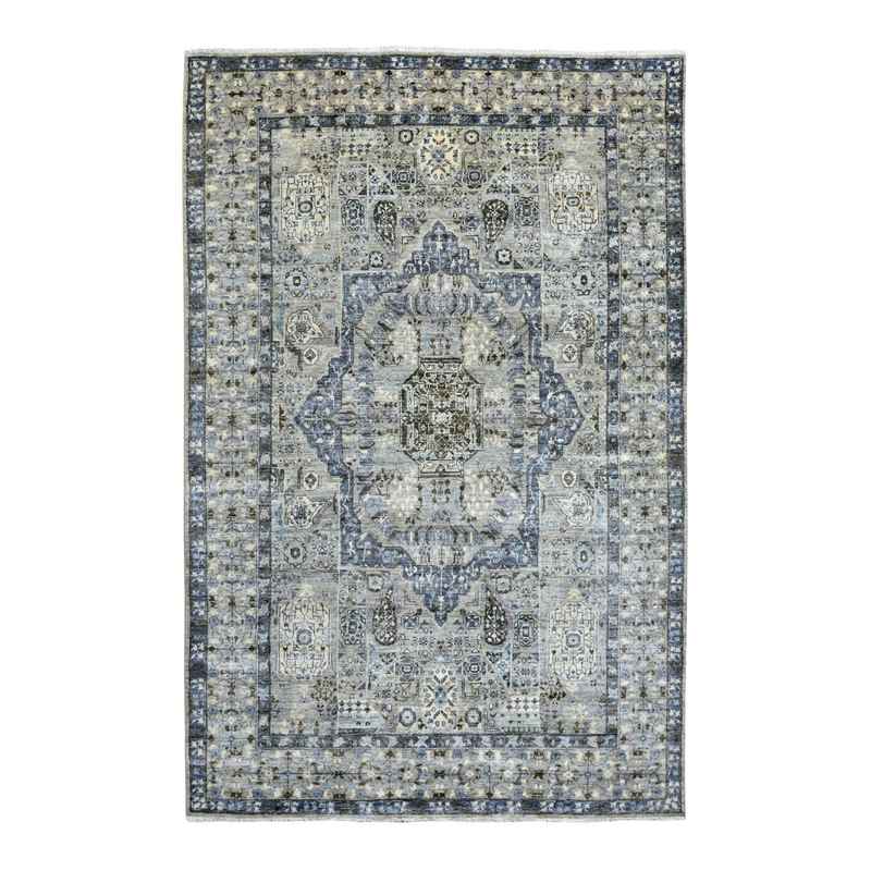 6’x9’5″ Gray Afghan Peshawar with Mamluk Design Soft and Pliable Wool Hand Knotted Oriental Rug Sh70221