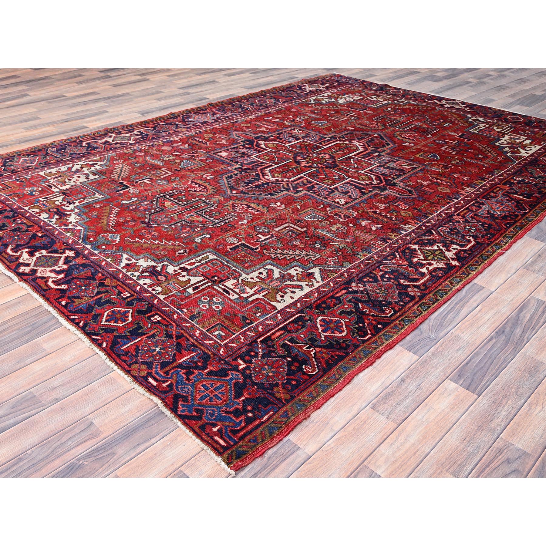 7’10″x11’1″ Treador Red, Good Condition, Evenly Worn, Distressed Feel, Natural Wool, Semi Antique Persian Heriz, Sides and Ends Professionally Secured, Oriental Hand Knotted Rug Sh85891