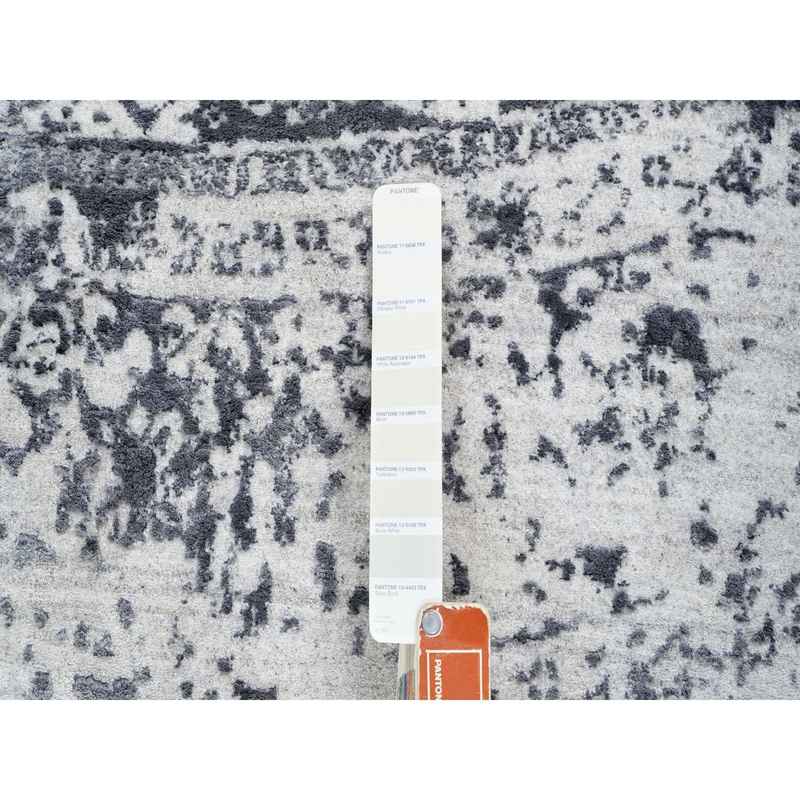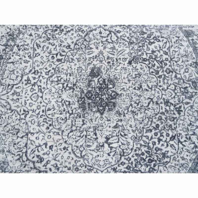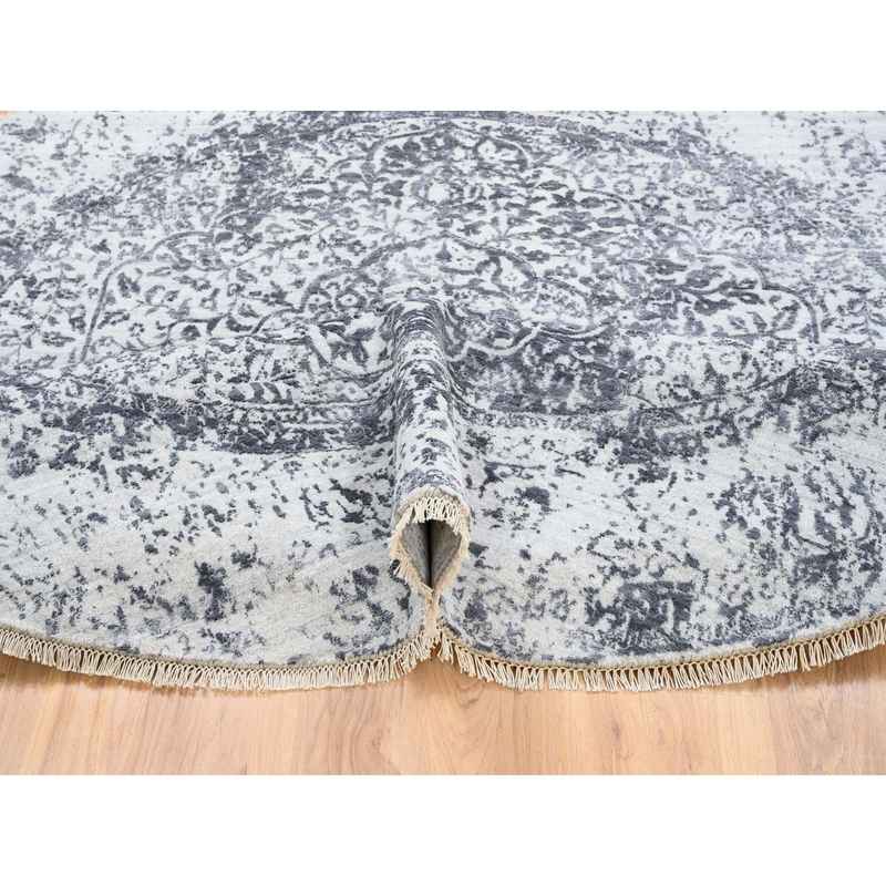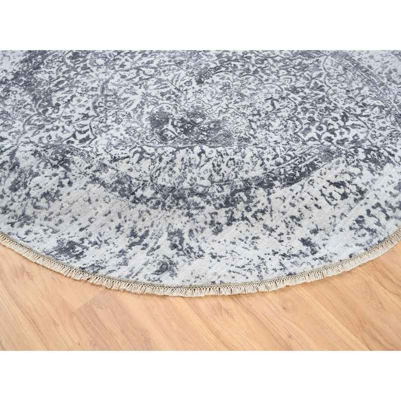 7’10″x7’10” Silver Gray, Erased Persian Design, Wool and Pure Silk Hand Knotted, Round Oriental Rug Sh64086
