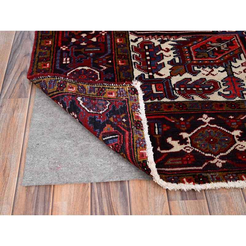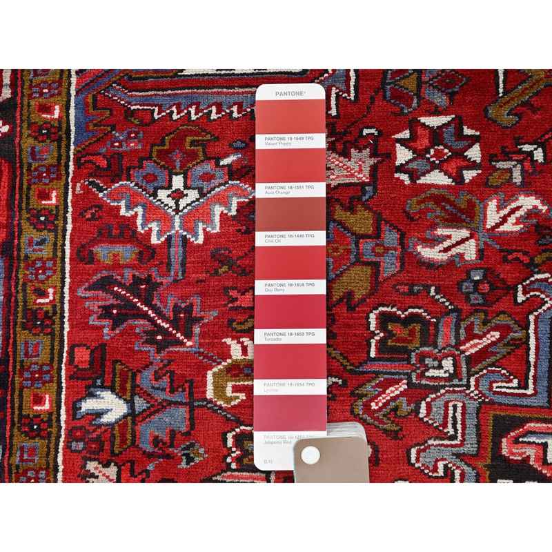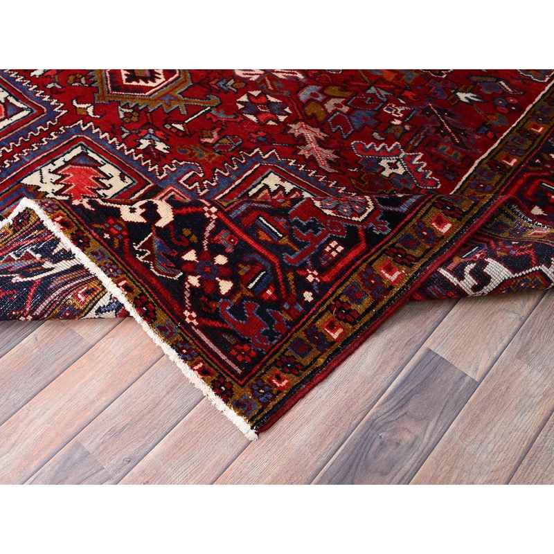 7’1″x10’4″ Capsicum Red, Vintage Persian Heriz, Sides and Ends Professionally Secured, Cleaned, Extra Soft Wool, Hand Knotted, Oriental Rustic Feel Rug Sh86124