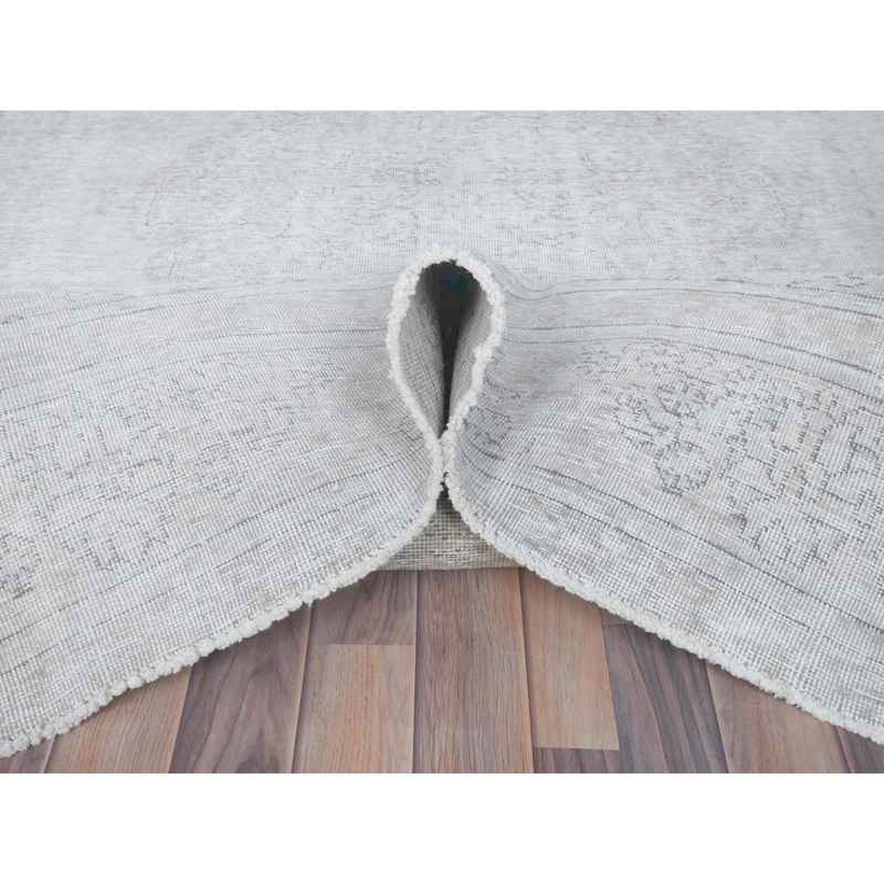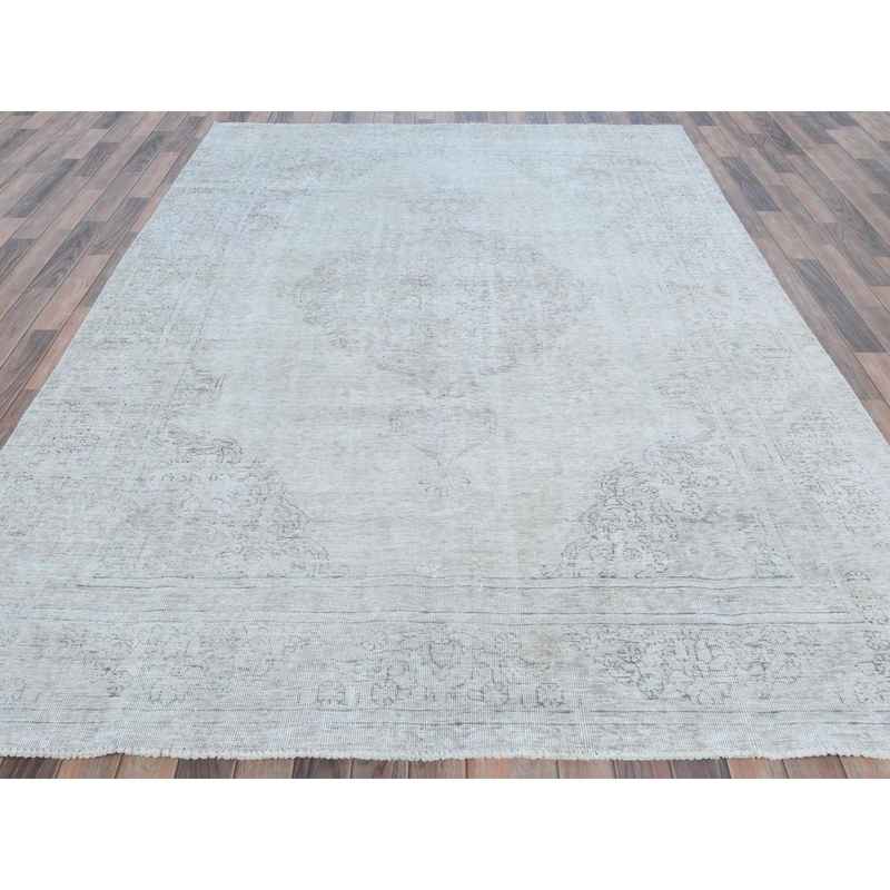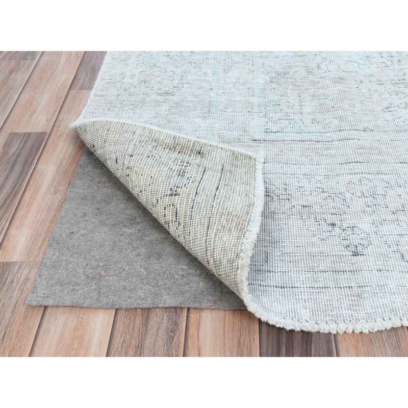 7’1″x10’8″ Beige Vintage Persian Tabriz Hand Knotted Worn Wool, Sheared Low, Distressed Look Shabby Chic Oriental Rug Sh81281