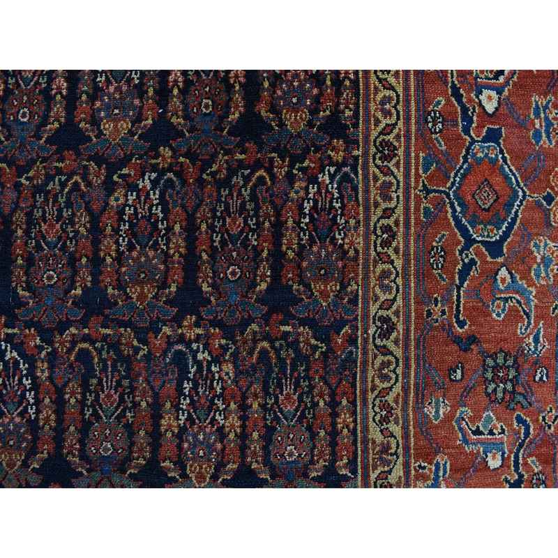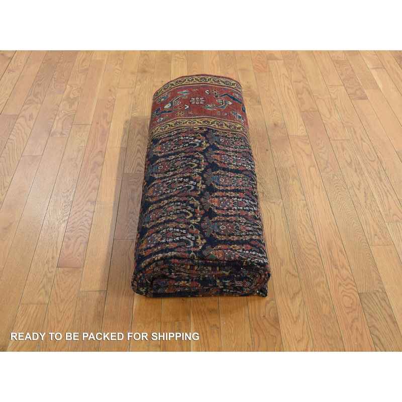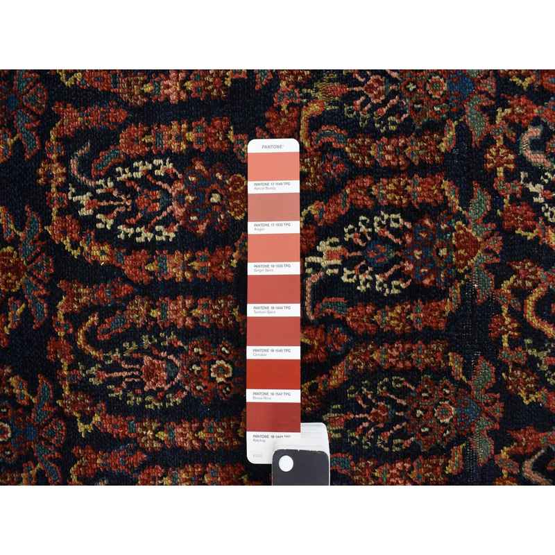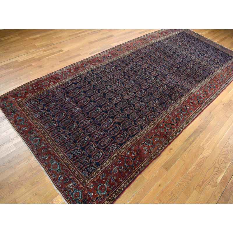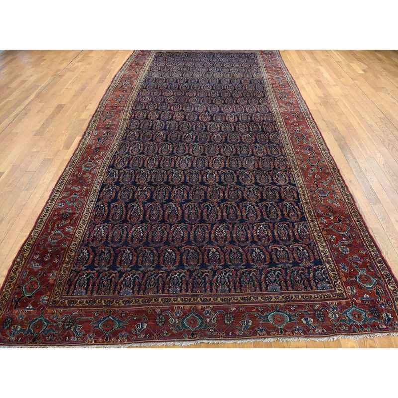 7’1″x16’3″ Midnight Blue, Antique Persian Bibikabad, Paisley Repetitive Botteh Design, Hand Knotted, Pure Wool, Even Wear, Cleaned, Sides and Ends Professionally Secured, Gallery Size, Oriental Rug Sh78088