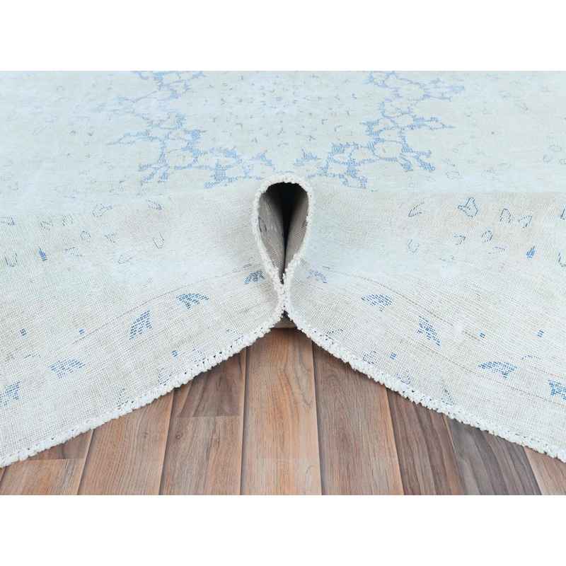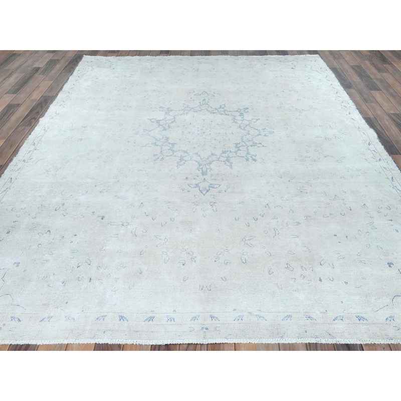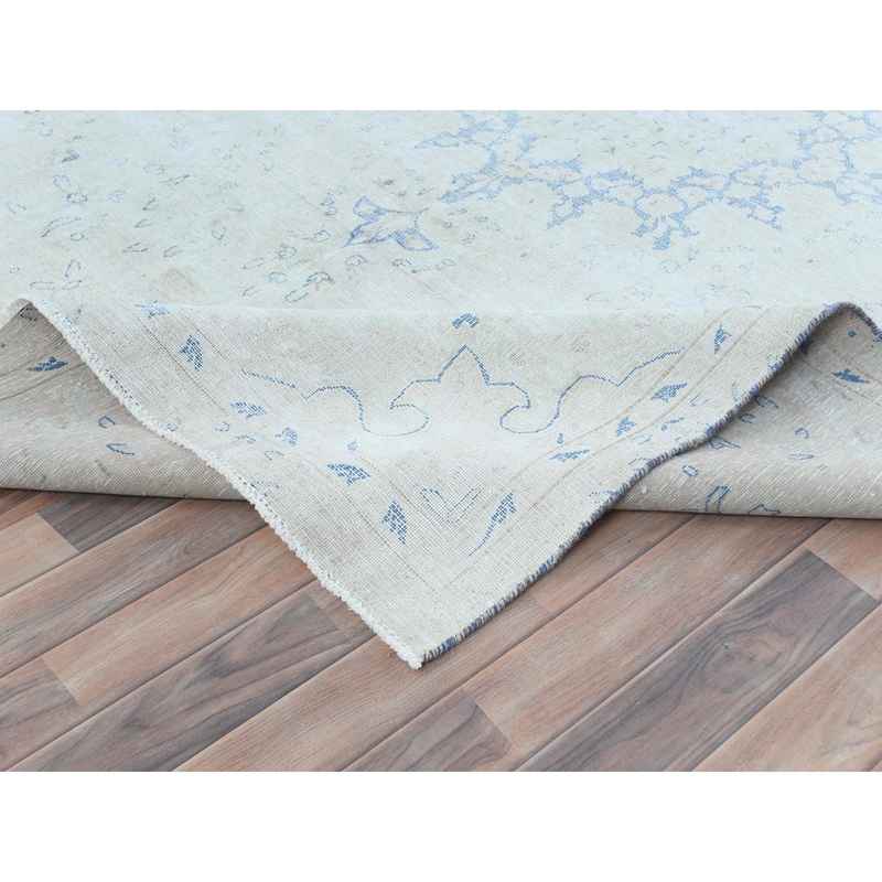 7’2″x10′ Light Blue Old Persian Kerman Hand Knotted Cropped Thin, Worn Wool, Shabby Chic Distressed Look Oriental Rug Sh81632