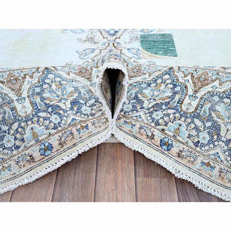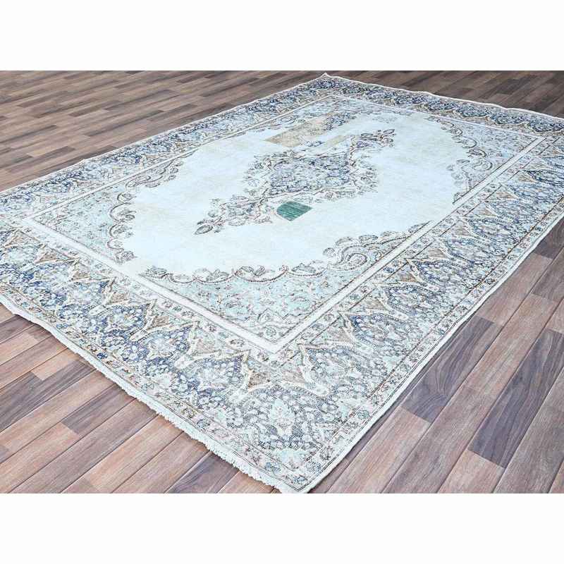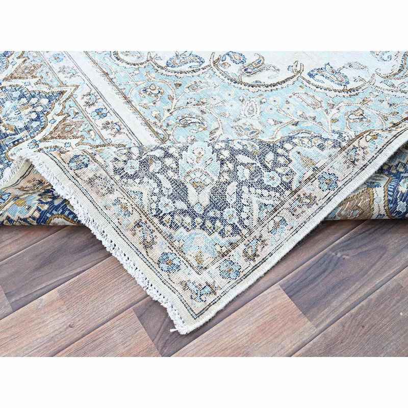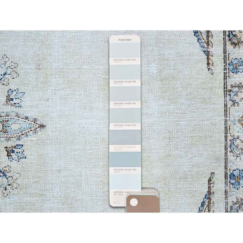 7’2″x10’1″ Misty Blue, Vintage Persian Kerman, Sheared Thin, Dense Weave, Nicely Done Patches, 100% Wool, Hand Knotted Oriental Rug Sh250