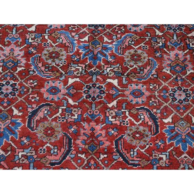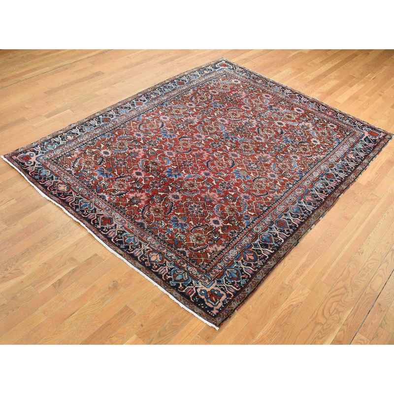 7’3″x9’7″ Fire Brick Red, Antique Persian Heriz with Fish Mahi All Over Design, Full Pile, Hand Knotted, Mint Condition, Pure Wool, Clean, Oriental Rug Sh87401