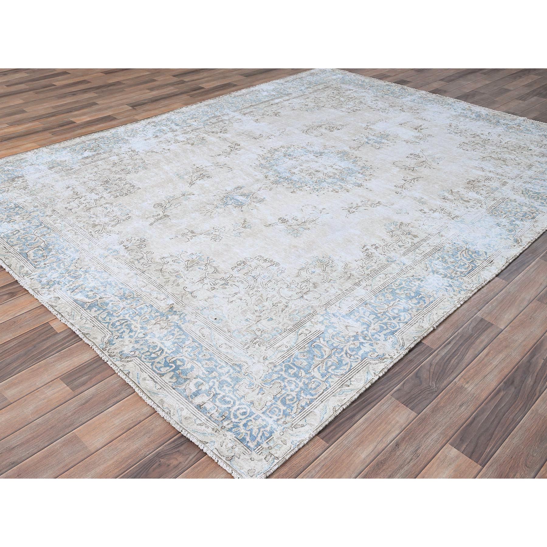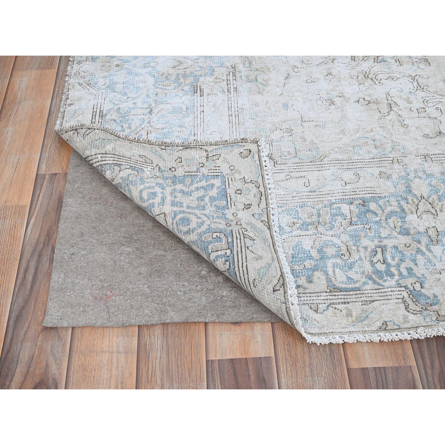 7’4″x9’9″ Alabaster White, Worn Down, Pure Wool, Hand Knotted, Vintage Persian Kerman, Erased Design, Cleaned with Sides and Edges Professionally Secured, Oriental Rug Sh85530