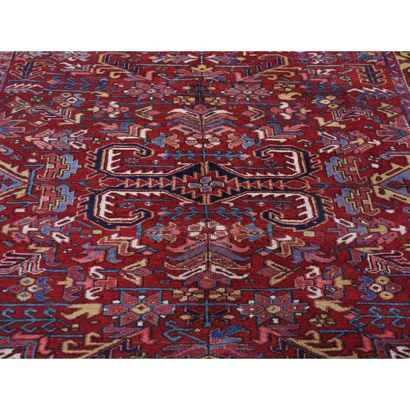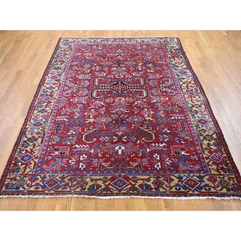 7’4″x9’9″ Tomato Red With Gold, Antique Persian Heriz All Over Geometric Design, Pure Wool, Full Pile, Excellent Condition, Hand Knotted, Clean, Sides and Ends Professionally Secured, Oriental Rug Sh80069