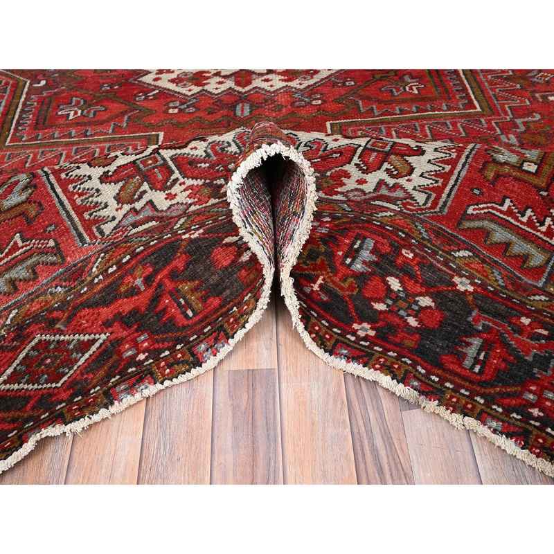7’5″x10’2″ Fire Brick Red, Vintage Persian Heriz with Village Motif, Good Condition, Distressed Look, Pure Wool, Hand Knotted, Oriental Rug Sh85570