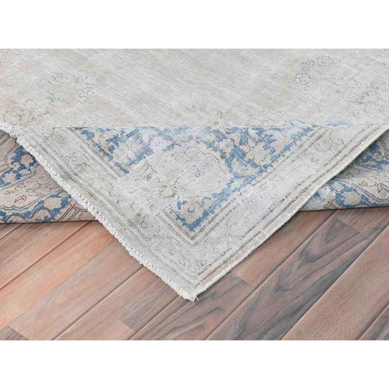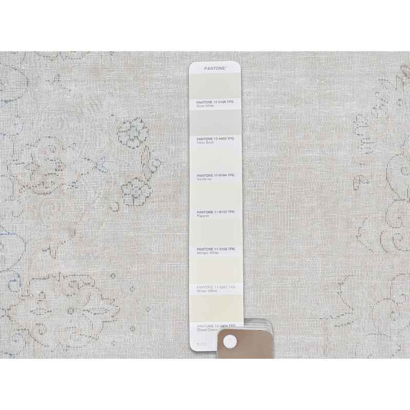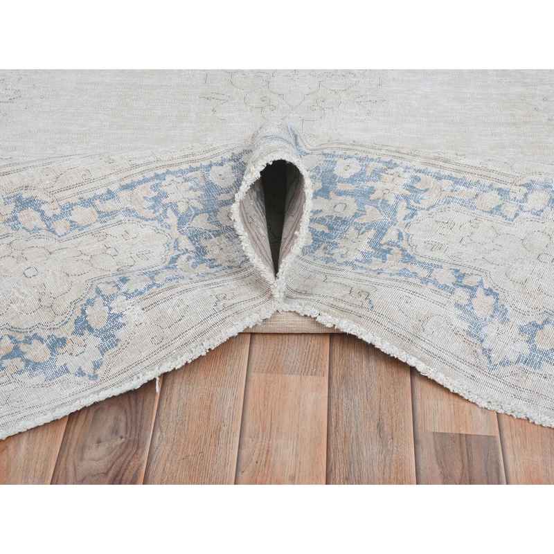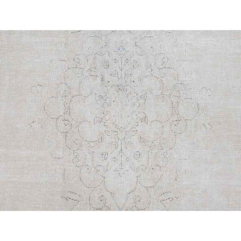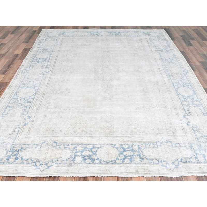 7’x10′ Ivory, Hand Knotted Vintage Persian Kerman, Sheared Low Distressed Look Worn Wool, Oriental Rug Sh81940