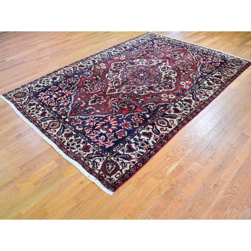 7’x10’4″ Red Vintage Persian Bakhtiar Good Condition Abrash Pure Wool Hand Knotted Oriental Rug Sh59868