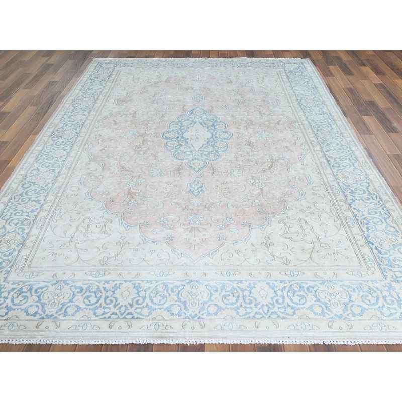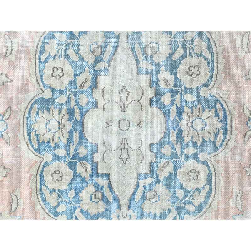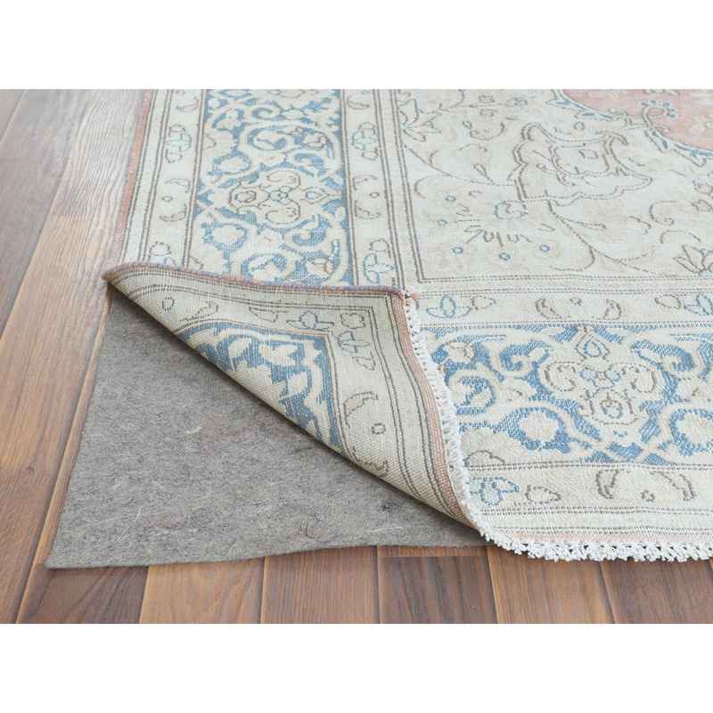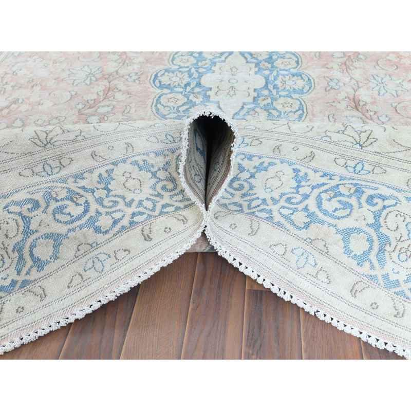 7’x10’4″ Worn Wool, Cropped Thin, Hand Knotted, Faded Red, Vintage Persian Kerman, Distressed Look, Oriental Rug Sh61719