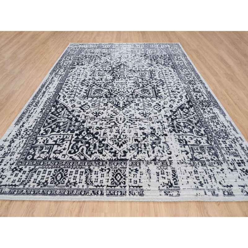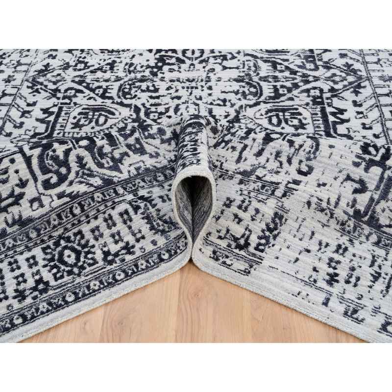 8’10″x11’10” Charcoal Black, Erased Serapi Heriz Design, Jacquard Hand Loomed, Wool and Plant Based Silk, Oriental Rug Sh63827