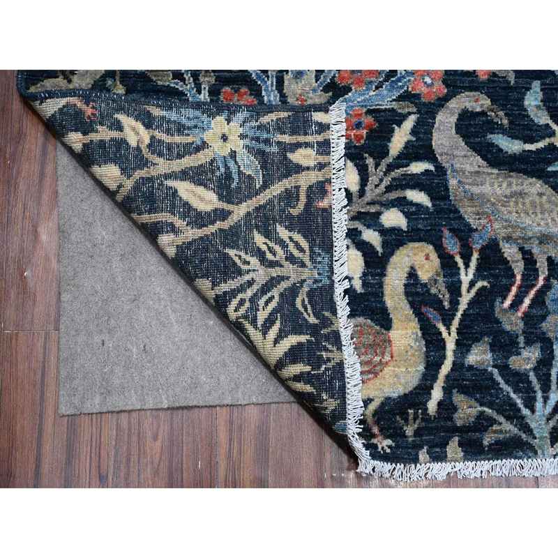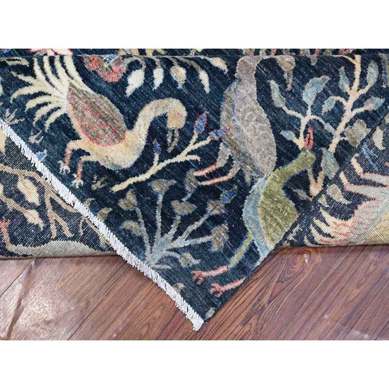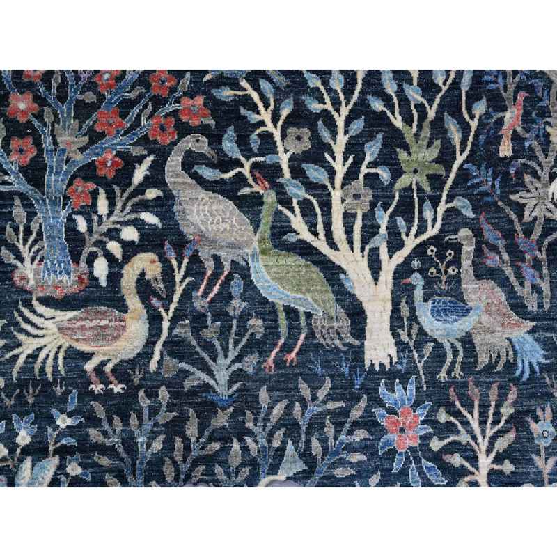 8’10″x11’10” Marine Blue, Afghan Peshawar With Birds of Paradise Tree Of Life Design, Vibrant Wool, Hand Knotted, Borderless Natural Dyes, Oriental Rug Sh89134