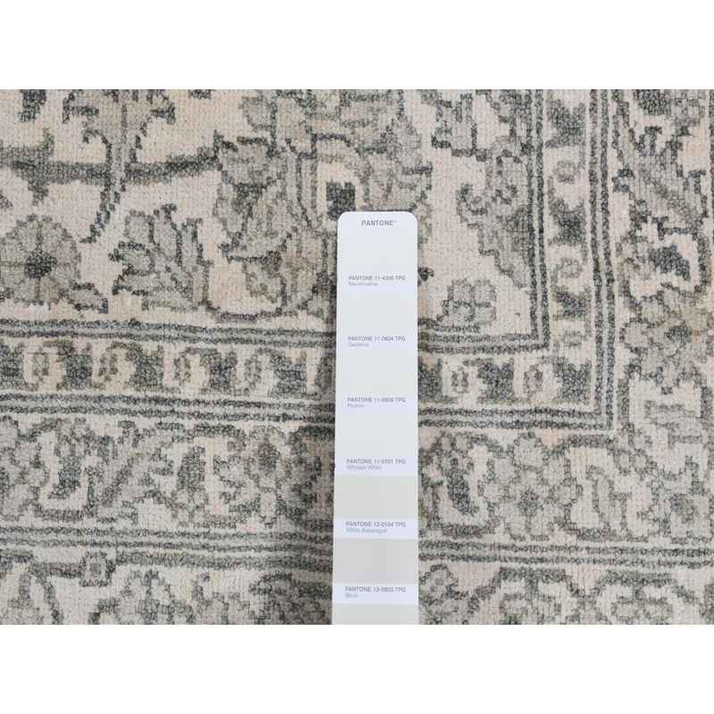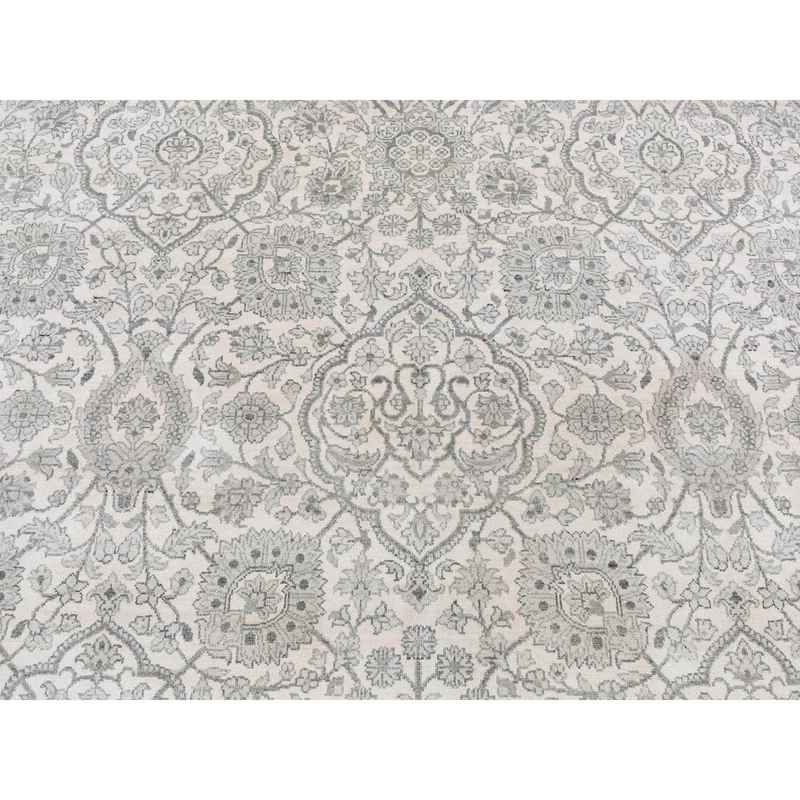8’10″x12′ Ash Gray, Arabesque Motif, Pure silk Tone on Tone Hand Knotted Oriental Rug Sh87155