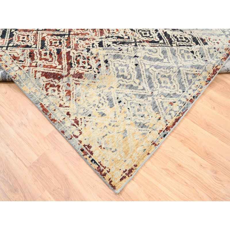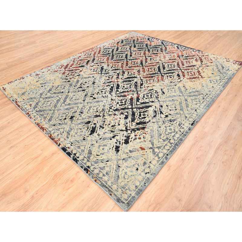 8’1″x10’1″ Silver Gray Supple Collection Erased Mughal Design Hand Knotted Pure Wool Oriental Rug Sh62649