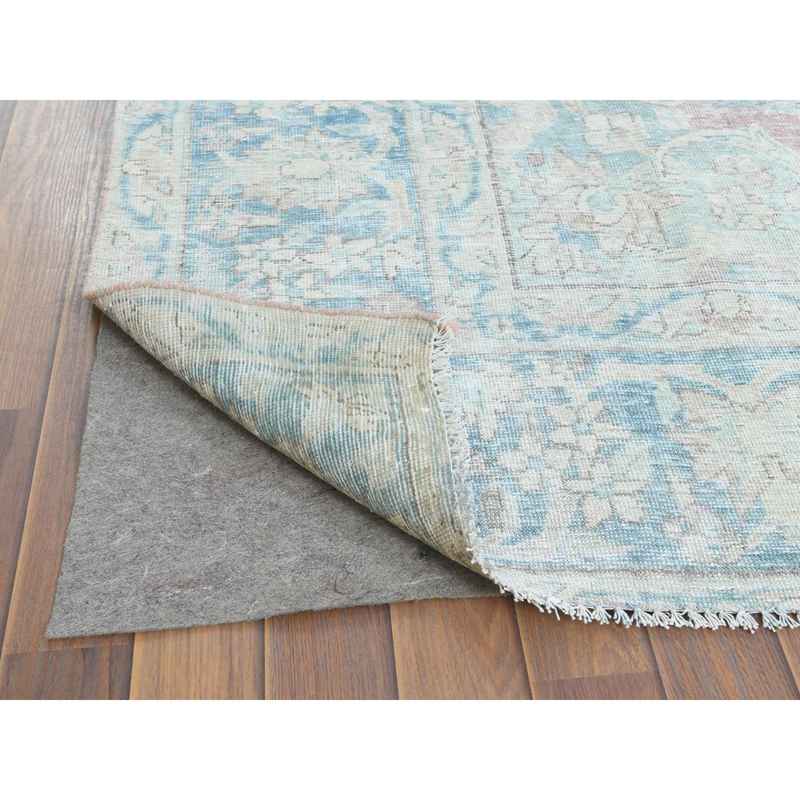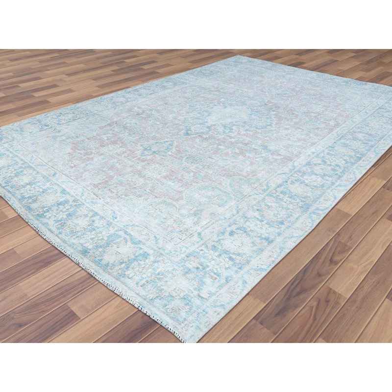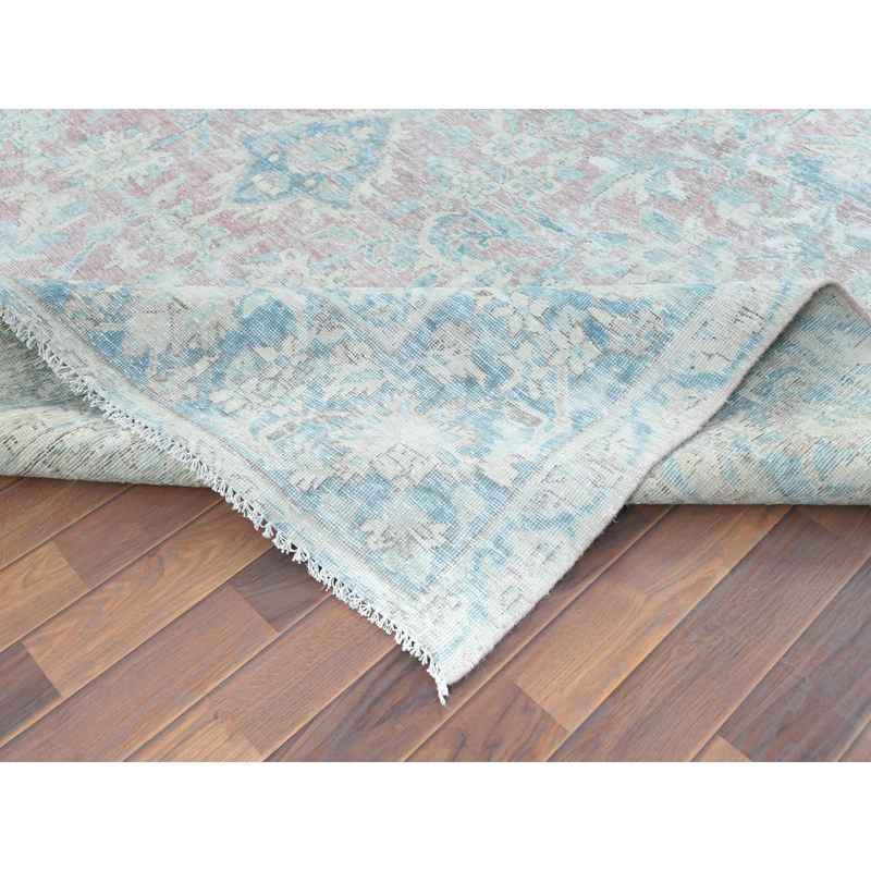 8’1″x12′ Faded Champagne, Distressed Look, Vintage, Persian Kerman, Worn Wool, Shaved Down, Hand Knotted Oriental Rug Sh61707