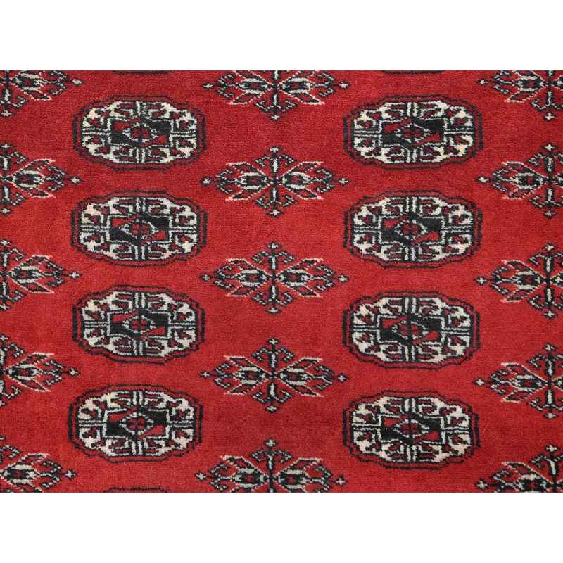 8’1″x9’9″ Deep and Rich Red, Hand Knotted Mori Bokara with Geometric Medallions Design, Organic Wool, Oriental Rug Sh82434
