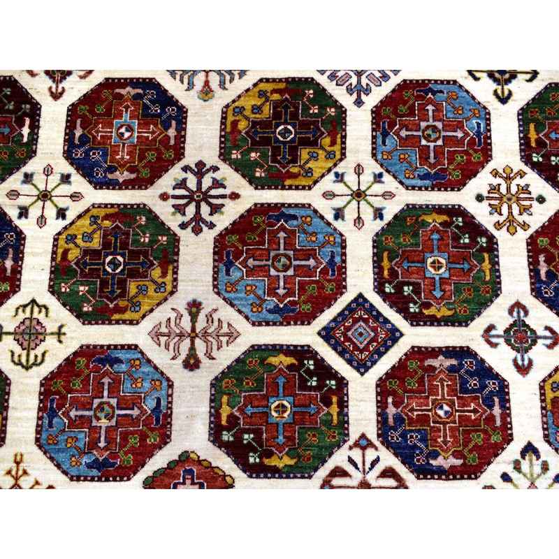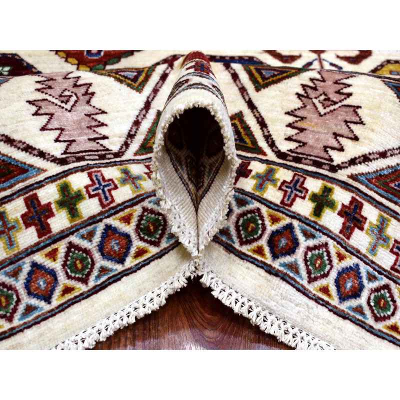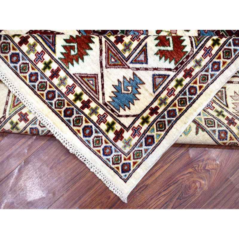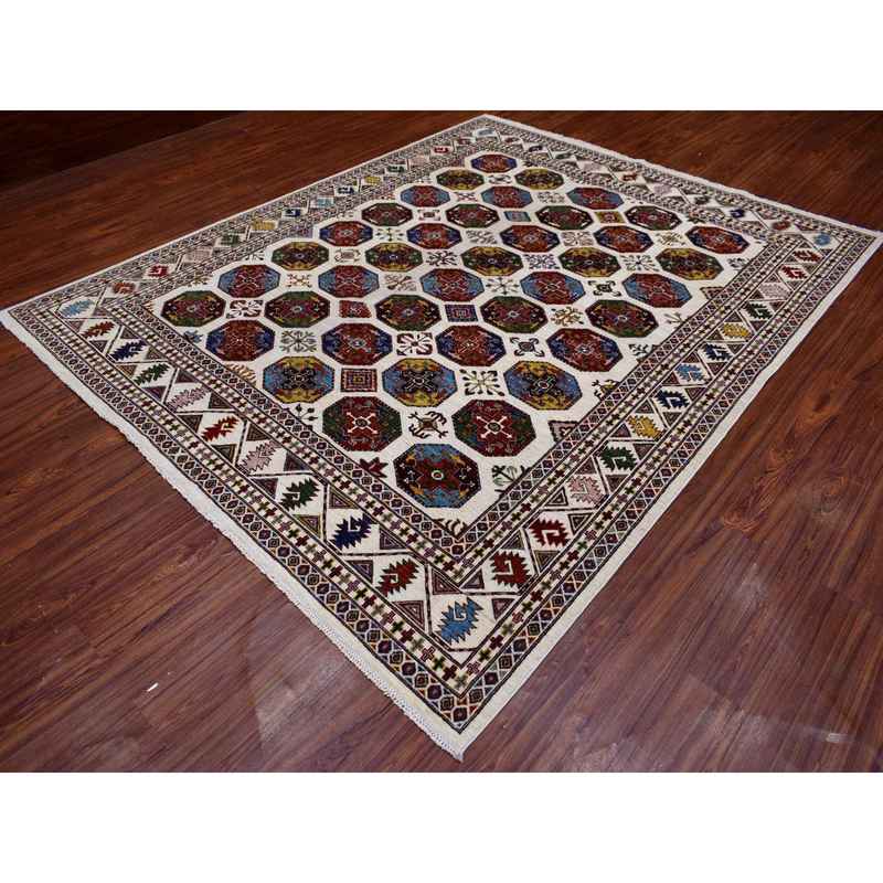 8’2″x10′ Organic Wool Hand Knotted Ivory Afghan Super Kazak with Elephant Feet Design Oriental Rug Sh70300
